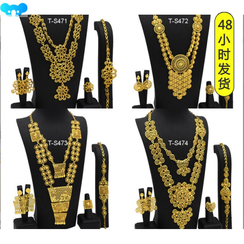 | nameOriginal | Dubai Women's Simple Long Gold Plated Bridal Jewelry Set Cross Border |