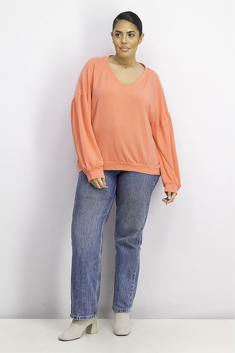 | descriptionOriginal | Care : Machine washable, Ideal For : Women, Size shown : International, Sleeve Length : Long Sleeve, Sweater Style : Sweatshirts, Thickness : Medium, Types of Hem : Straight hem, Types of Neckline & Collar : V-neckline, Types of Sleeve : Longsleeve, Disclaimer : Product color may slightly vary due to photographic lighting sources or your monitor settings., Fabrics : 62% Polyester, 35% Rayon, 3% Spandex, Occasion : Casual, Pattern & Print : Plain/Solid, Types of Closures : Pullover, Color Family : Orange, |