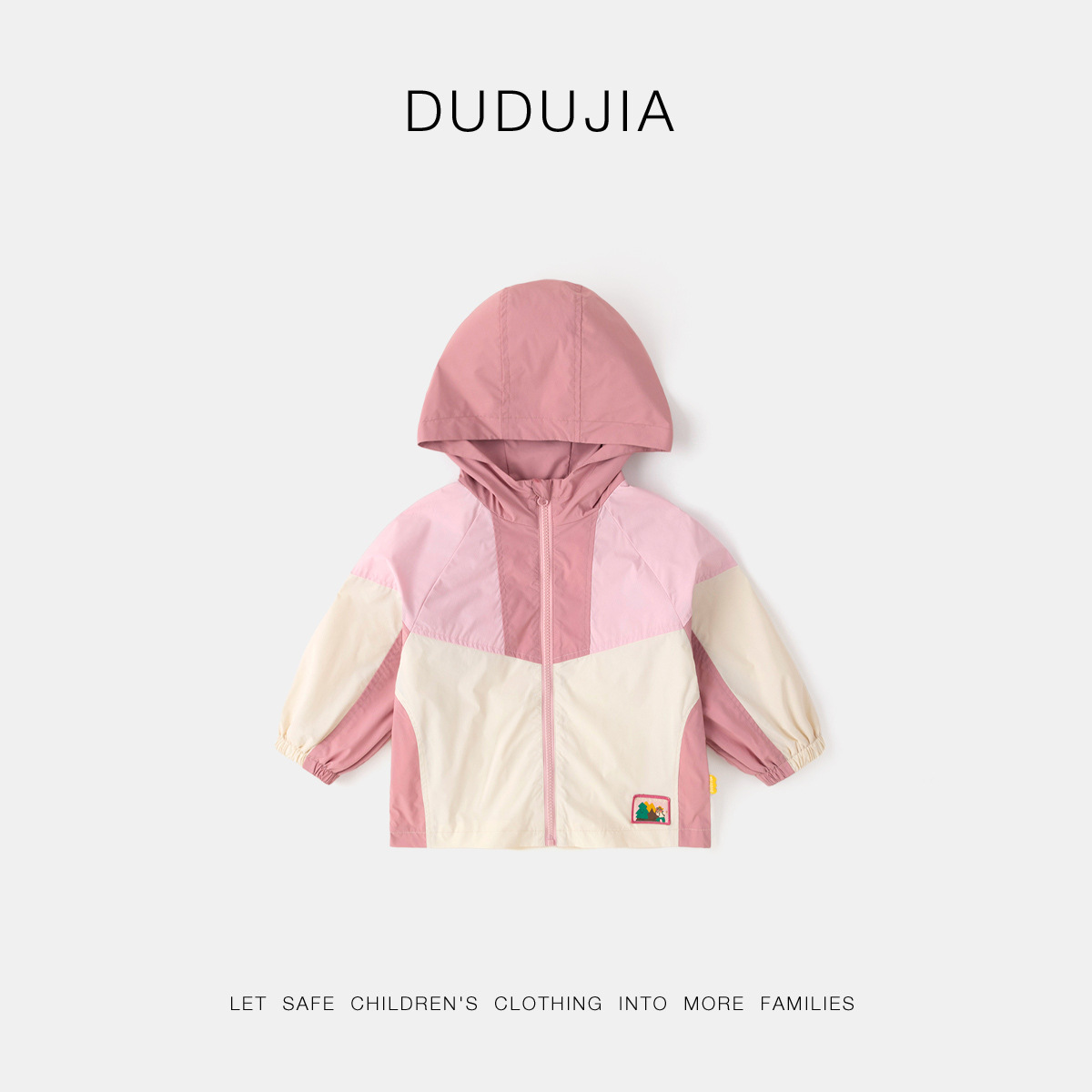 Dudu boys’ zipper coat spring stitching girls’ hooded top spring new baby clothes children’s clothing fashion