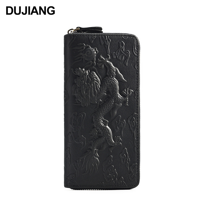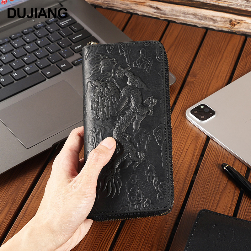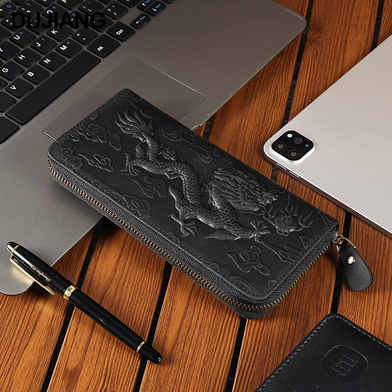 DUJIANG New Men's Leather Wallet Large Capacity Business Vertical Coin Purse Simple Zipper Clutch Bag
