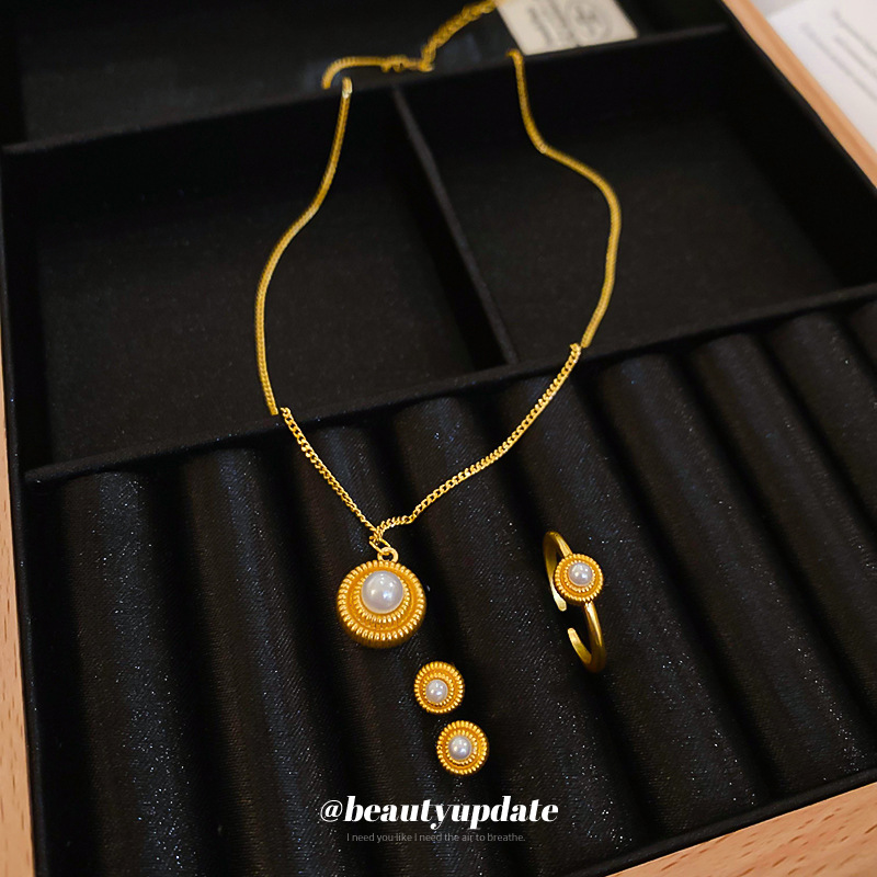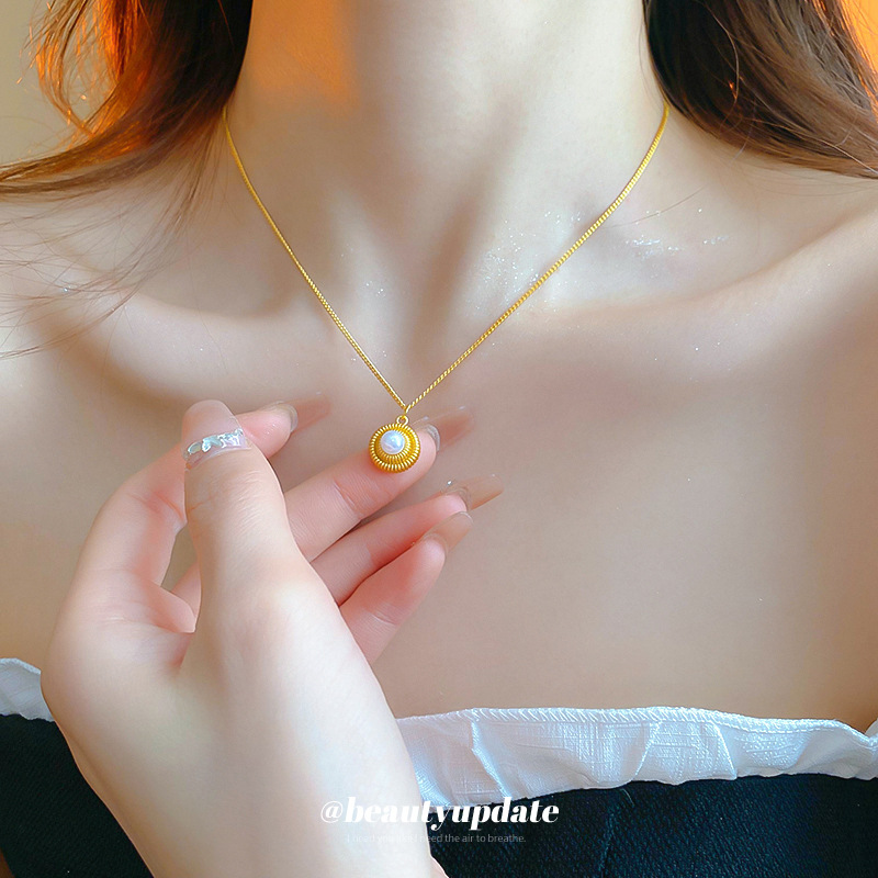 | nameOriginal | Dumb Gold Round Pearl Pendant Necklace Set Simple High-end New Clavicle Chain Niche All-match Commuter Necklace |