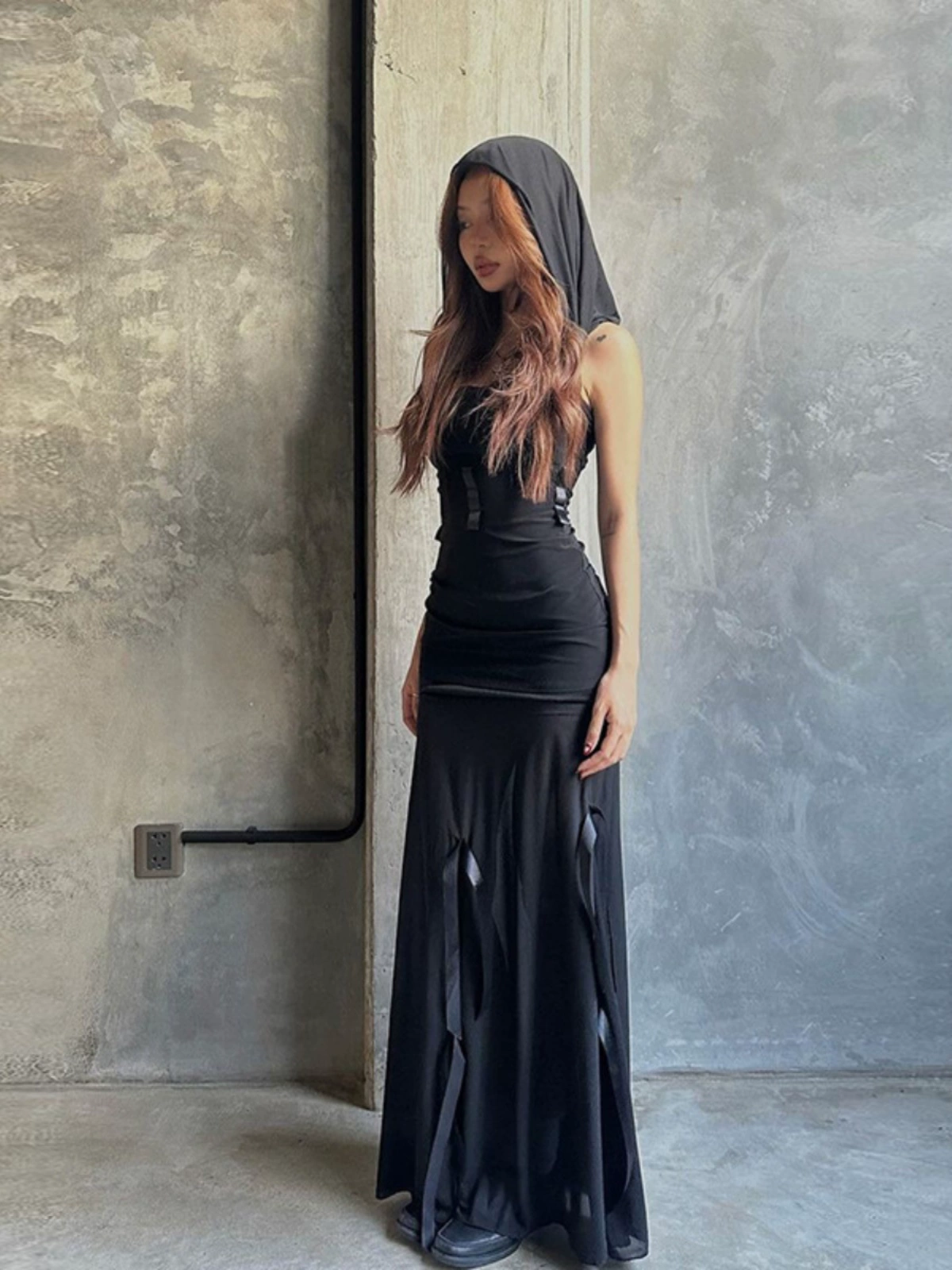 | nameOriginal | Dune wasteland style black hooded dress, waist slimming, niche design, sexy one skirt, two wear long skirt |
