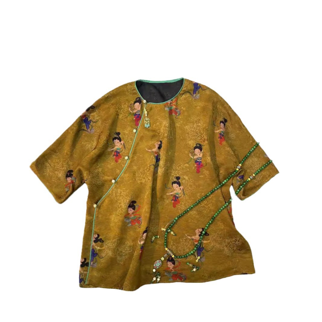 | nameOriginal | Dunhuang Feitian Little Tang Dynasty Top New Chinese Style National Style Slant Collar Crewneck Simple and Atmospheric Loose Elegant Tang Suit Short Sleeve |