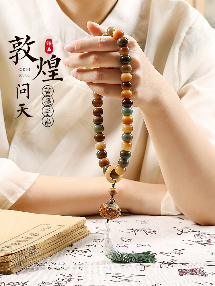 Dunhuang Wentian White Jade Bodhi Root Handheld Handstring Women's Bracelet Plate Playing Bodhi Beads Men's Beads