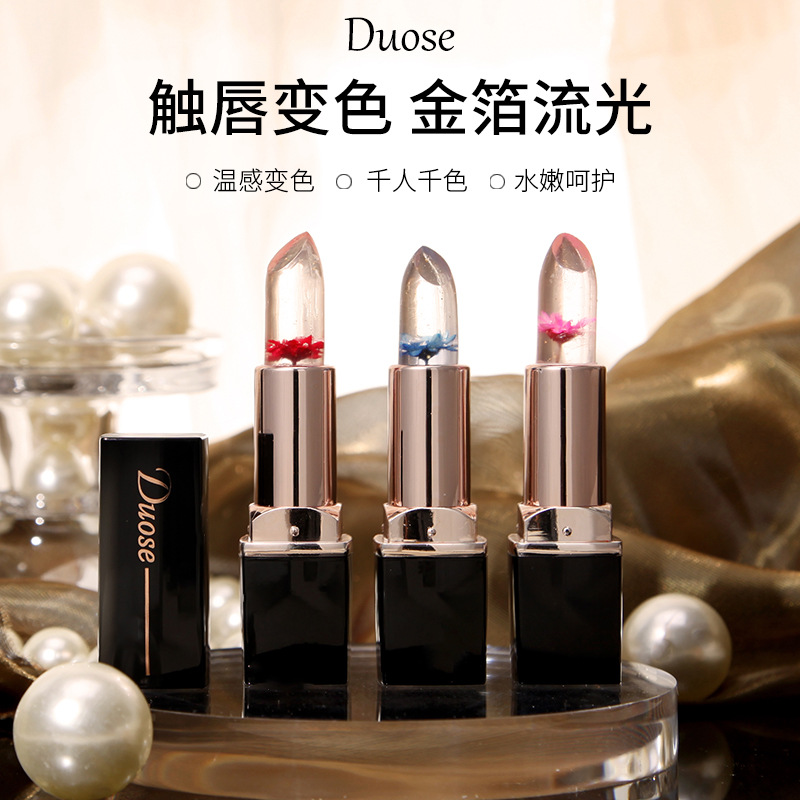 | nameOriginal | DUOSE duo color ~ flower jelly color changing lipstick non-stick Cup Crystal gold foil lipstick moisturizing temperature change moisturizing manufacturer |