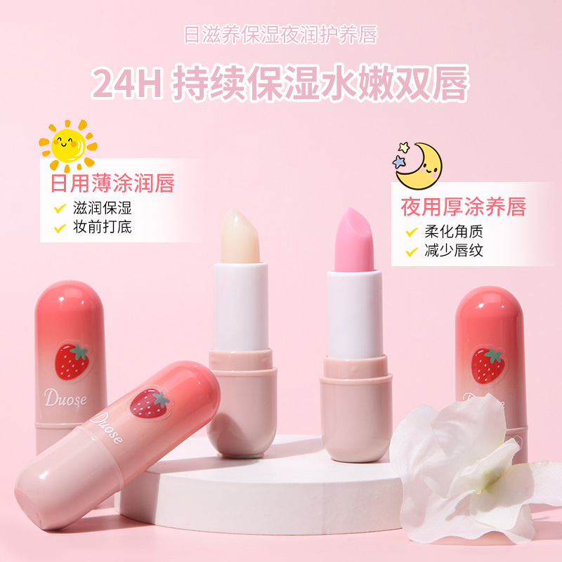 DUOSE duo color ~ strawberry lip balm moisturizing strawberry flavor color-changing lip balm anti-cracking Moisturizing Lip Base