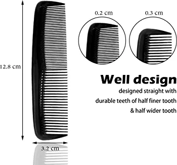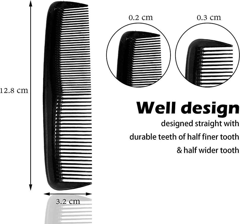 This hair comb set comes in six different colors – black, navy blue, pink, light blue, green, and purple. Made of durable plastic, each comb measures 12.8 x 2.5 cm/ 5 x 1 inch and features smooth and comfortable teeth that prevent hair from tangling or pulling. Suitable for both men and women, this comb set can be used in various settings such as salons, hotels, or even as part of personal care kits for homeless shelters. You can also use them for your pets or keep them on your dresser. The set includes four combs that are unbreakable and can be used on thick, curly, or straight hair without causing damage. The paint used on the combs is non-toxic and does not fade. Please avoid exposing the combs to heat or flame and do not bend them with excessive force.