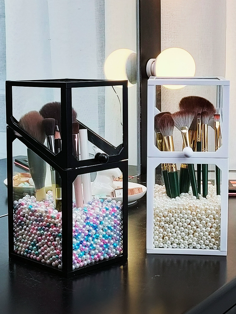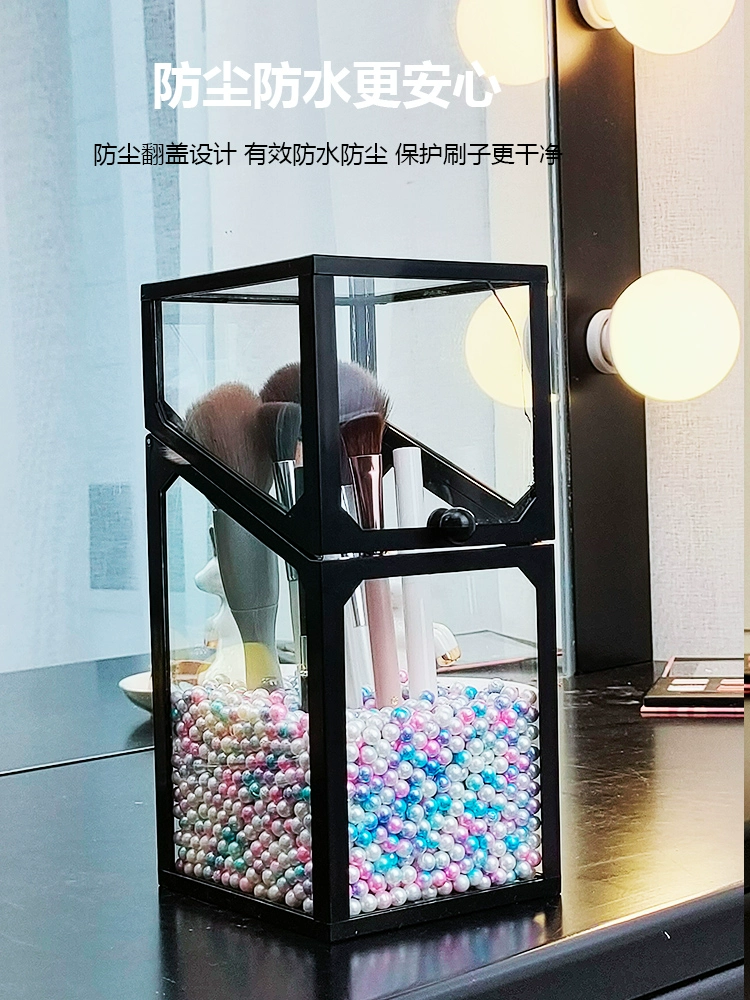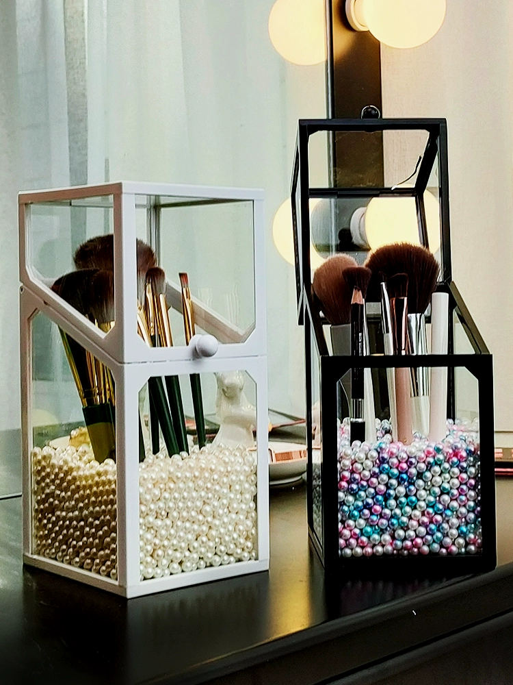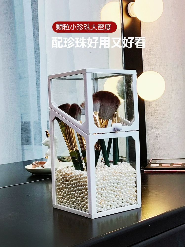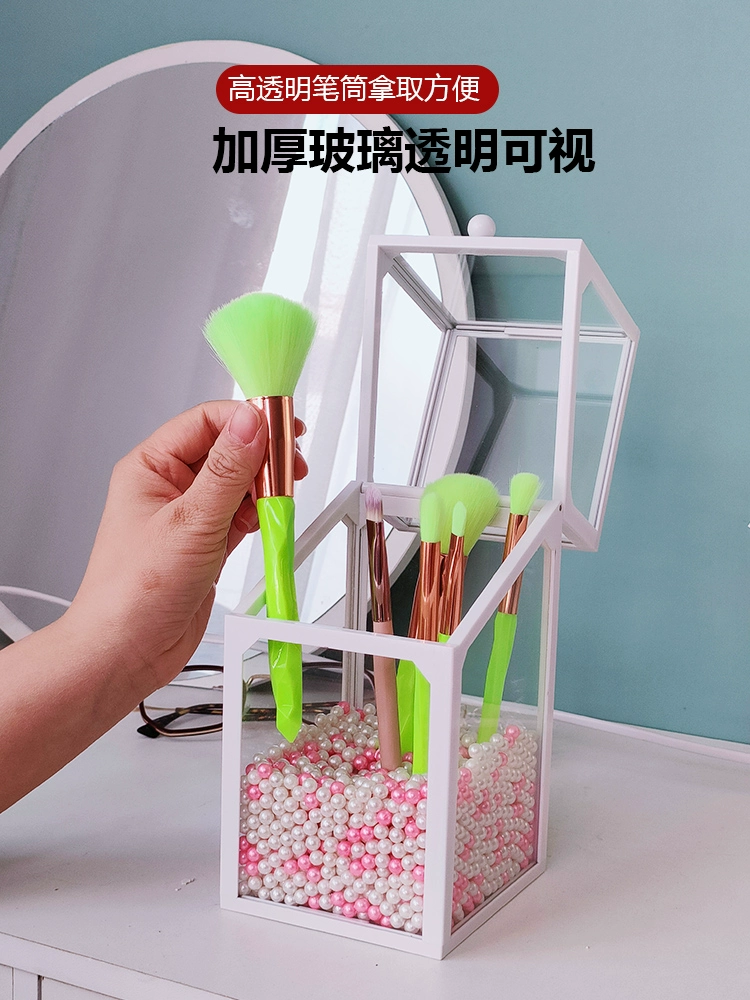 Dust-proof makeup brush barrel, beauty brush storage barrel, glass loose powder brush, transparent storage barrel, eyebrow pencil, pearl barrel pen holder