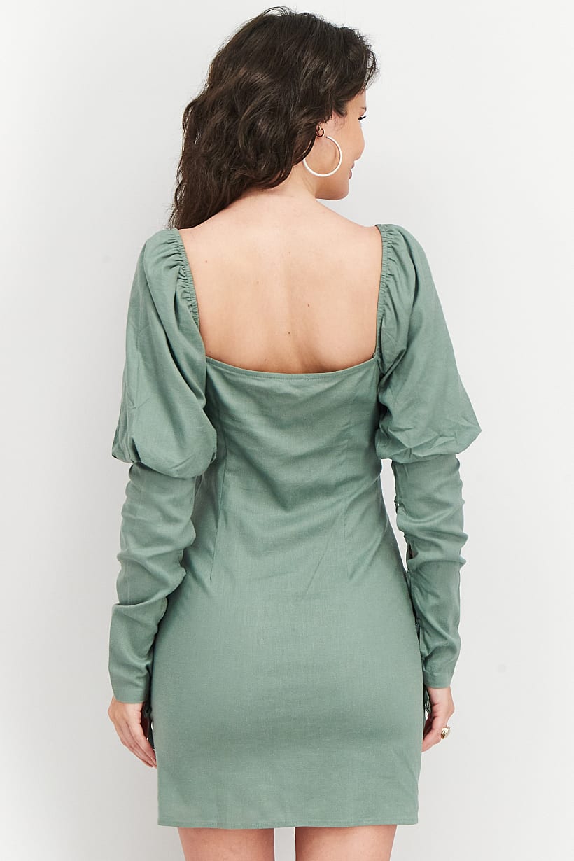 | nameOriginal | Women Solid Lacing Detail Long Puff Sleeve Casual Mini Dress, Dusty Green |