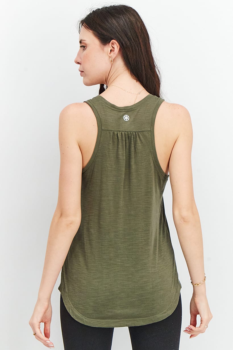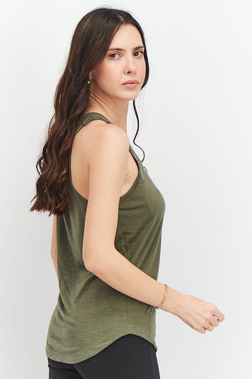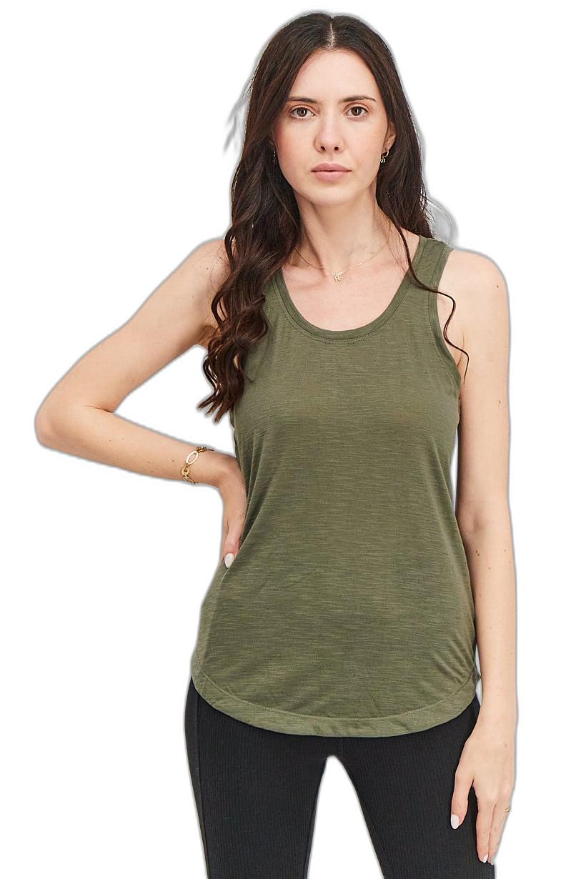 Dusty Olive Sleeveless Training Top for Women with Textured Easy Fit.