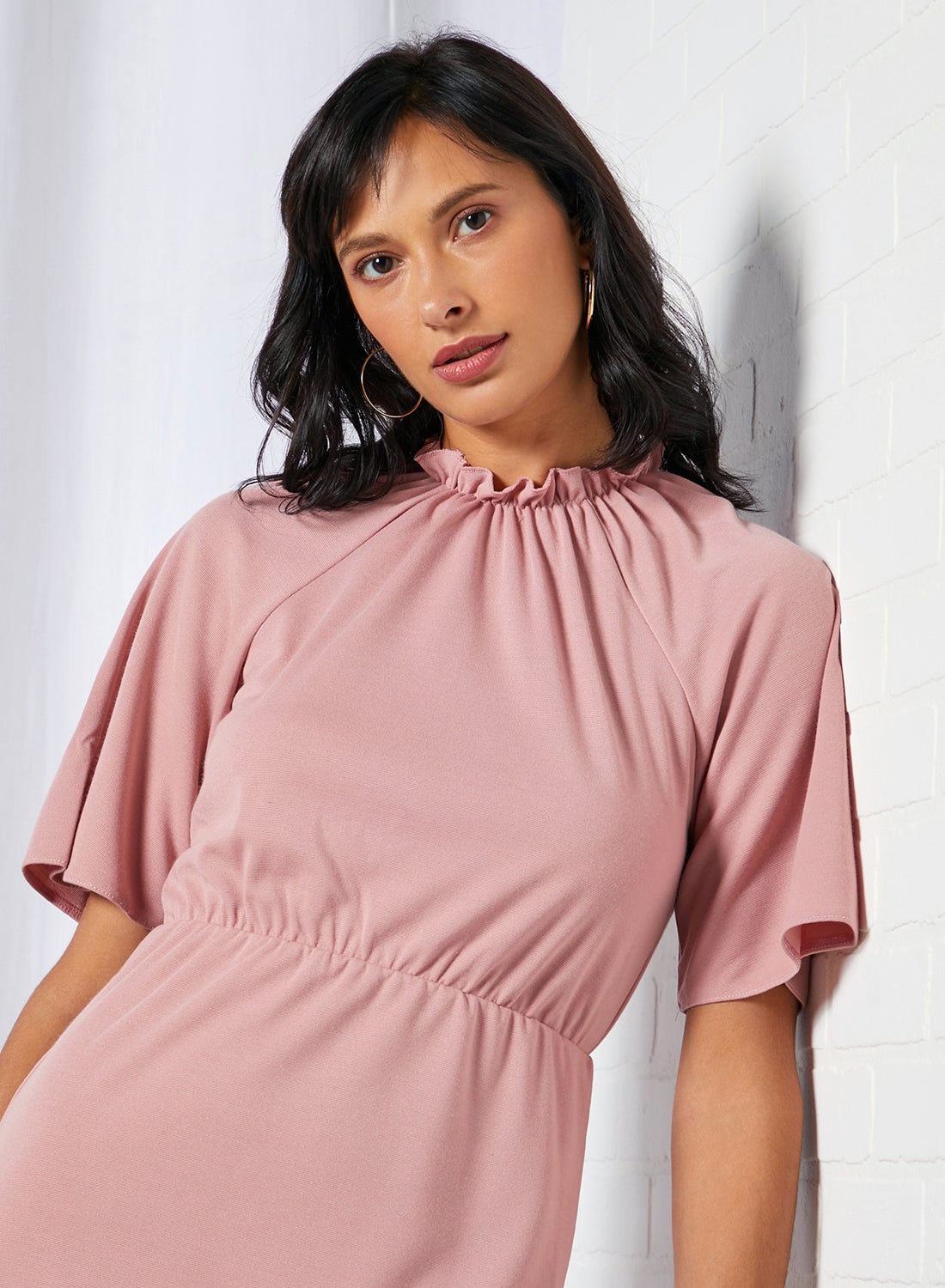| nameOriginal | Cinched Flutter Sleeve Dress Dusty Rose |