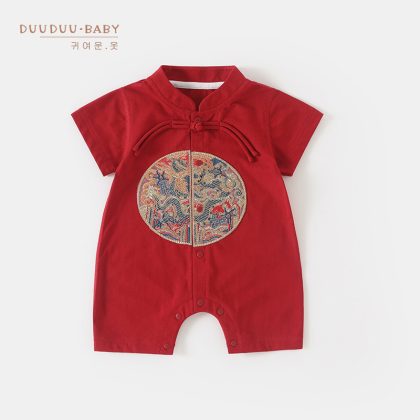 DUUDUU Chinese Style Full Moon Baby Jumpsuit Summer Short-sleeved Bag Fat Clothes Thin Ha-ha Clothes Class A Baby Clothes