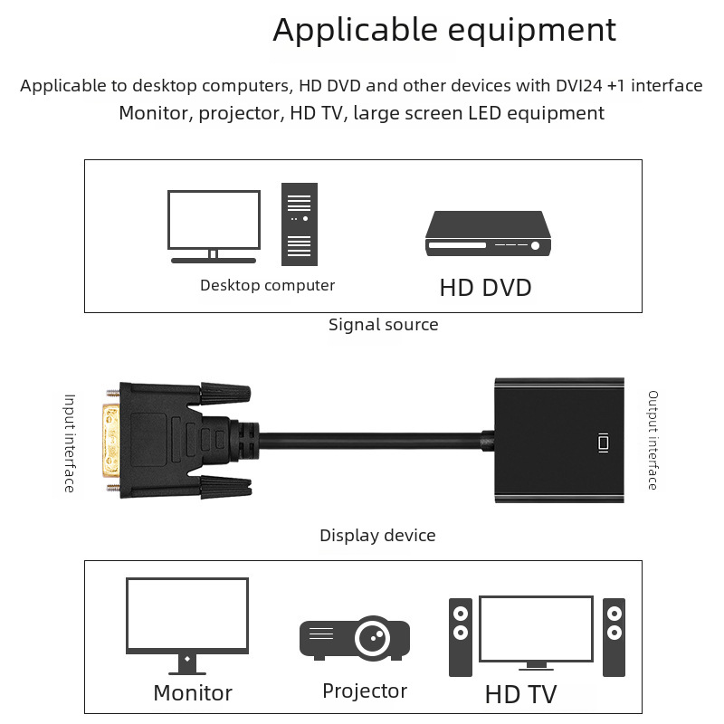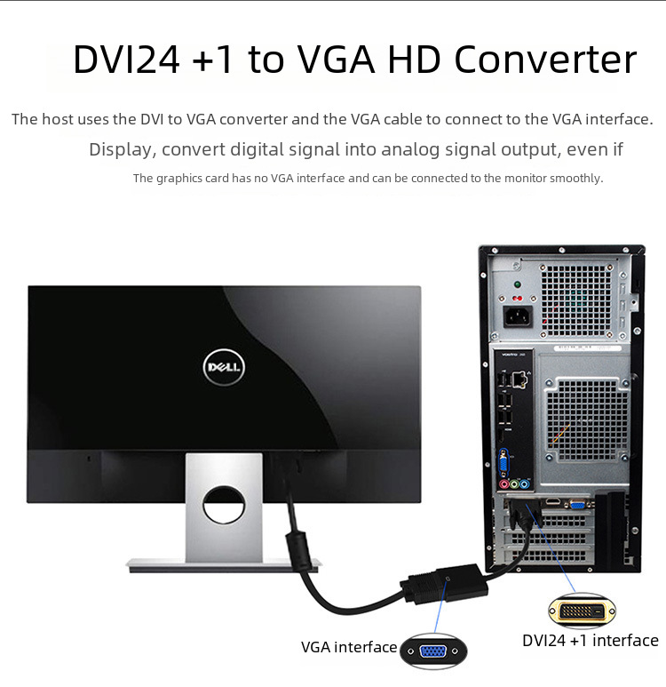 DVI to VGA converter dvi24 +1 to vga with Chip computer HD cable 1080p display