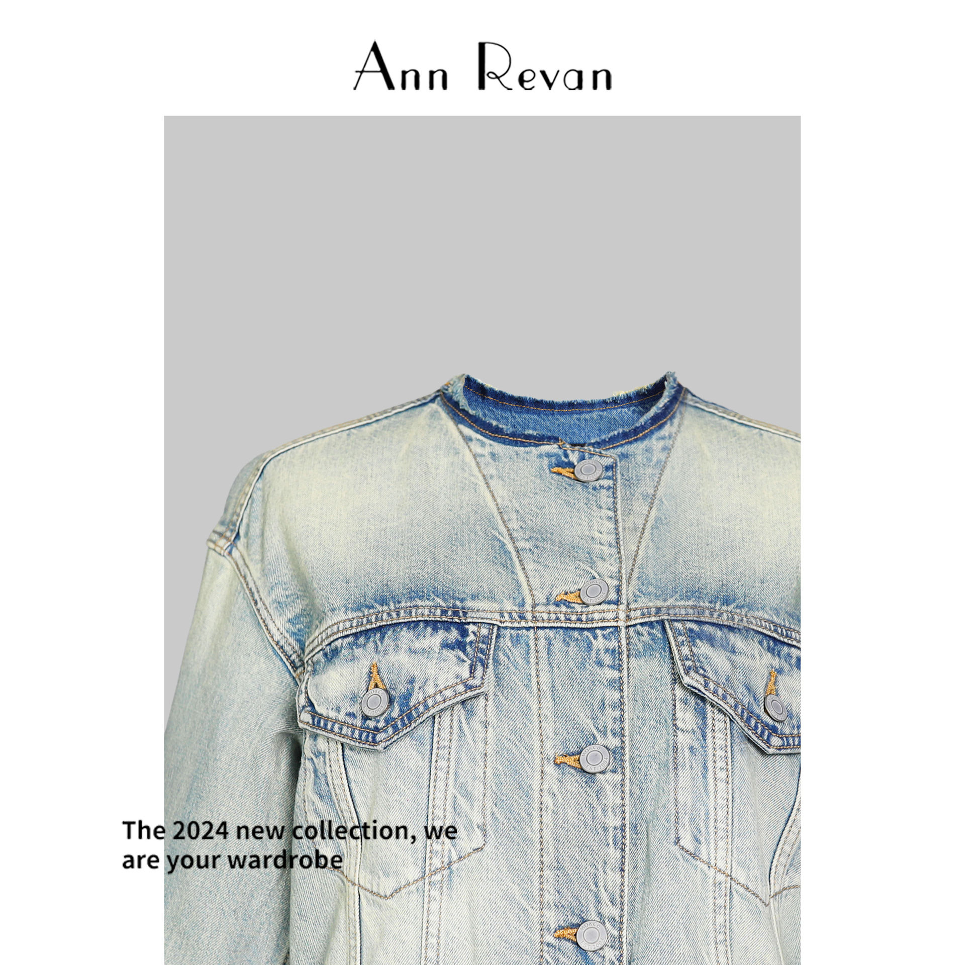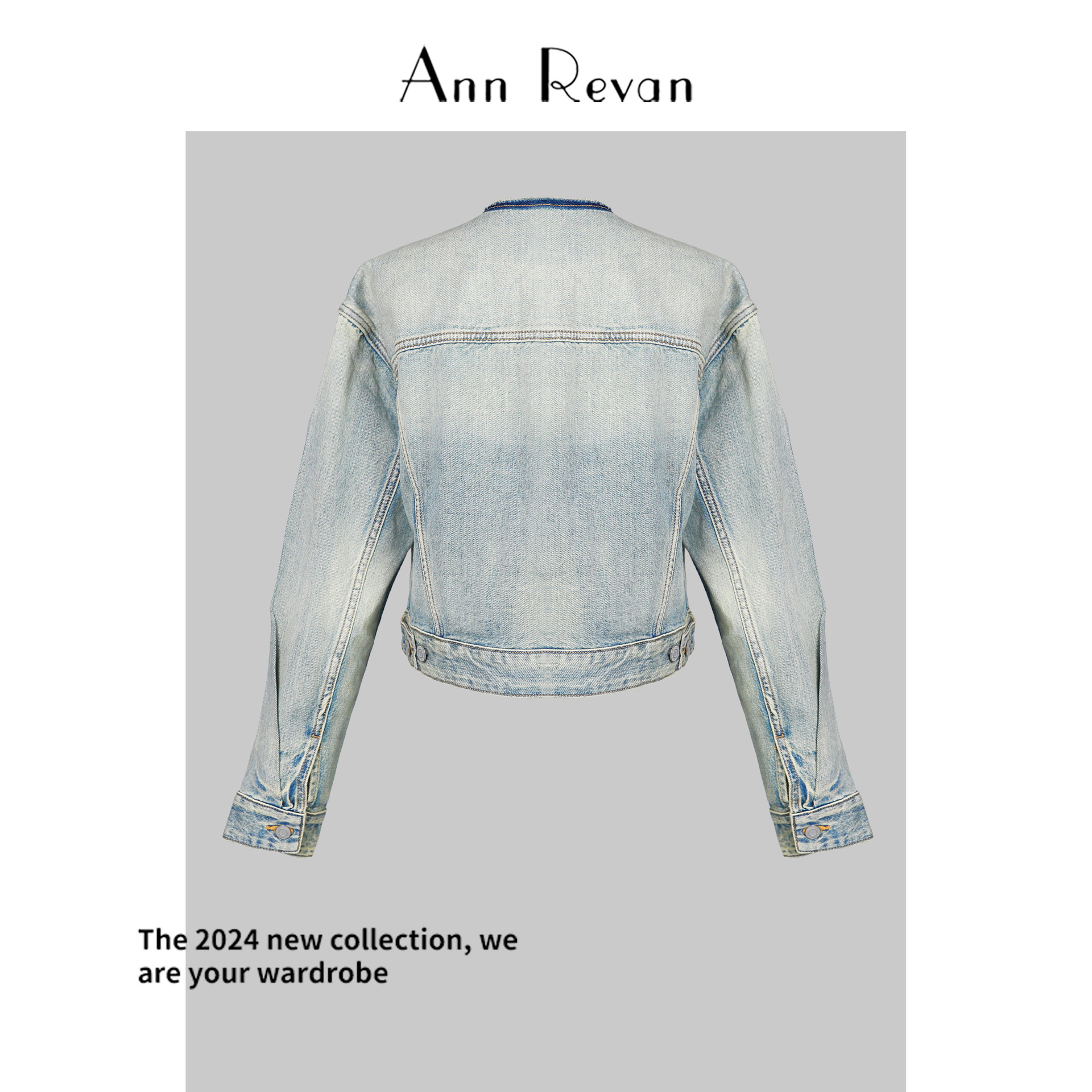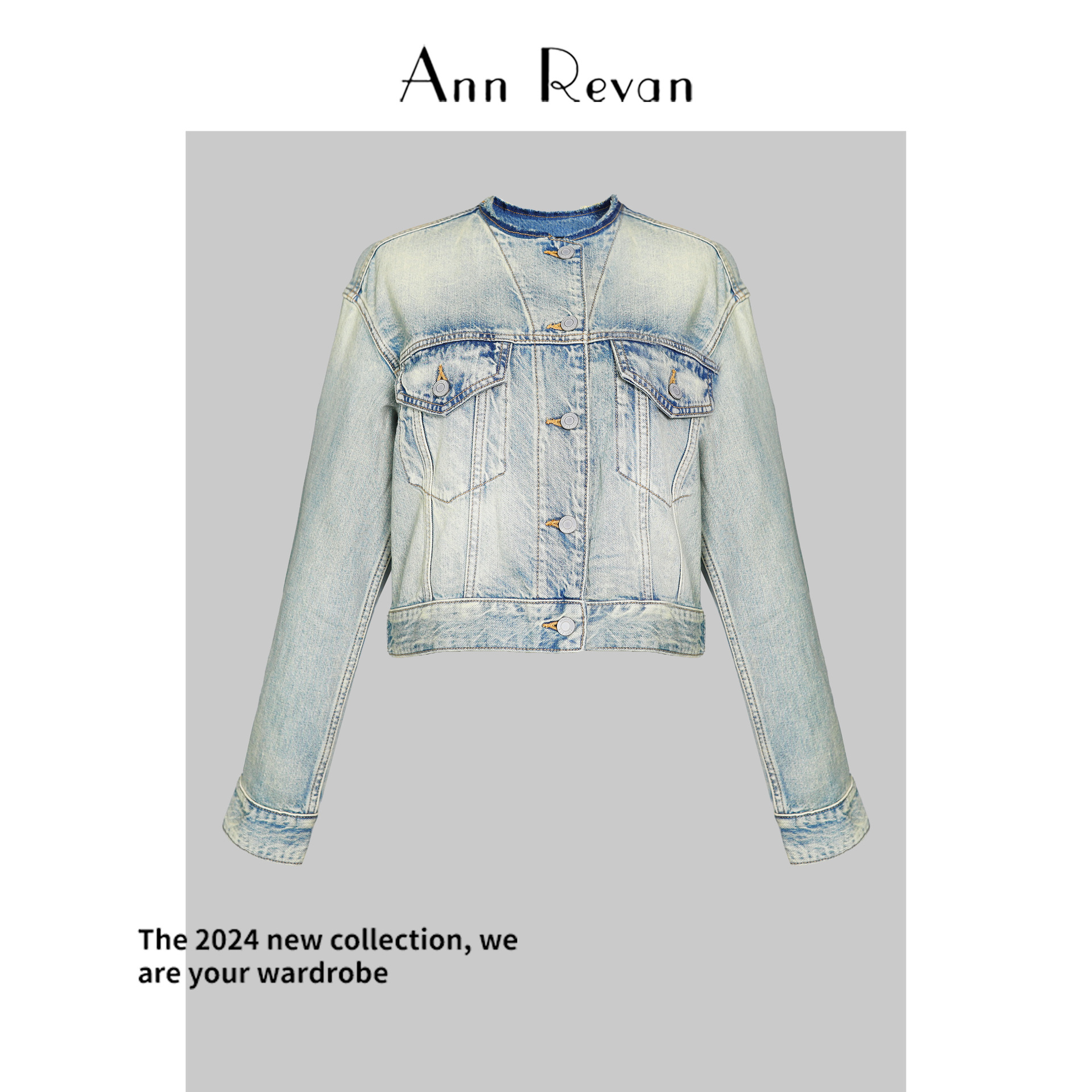 | nameOriginal | DY3639-2024 New Tailored Round Neck Short Denim Jacket Loose Slimming Light Color Jacket Top |