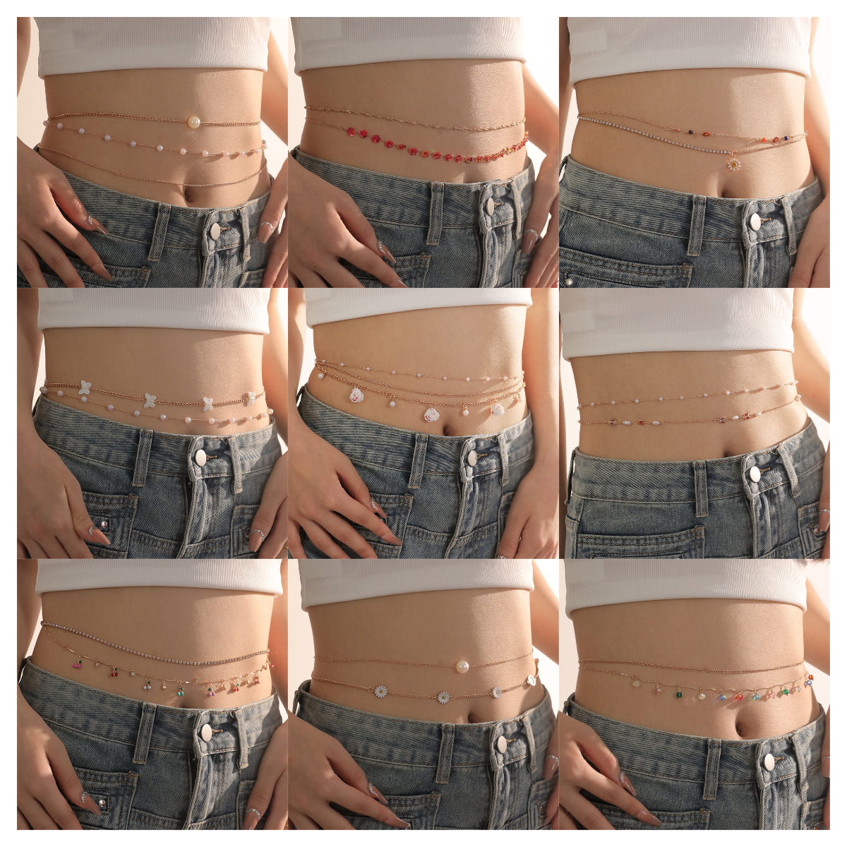 DZ0474 Cross-border European and American Women’s Jewelry Fashion Diamond Body Chain Summer Navel Beach Casual Women’s Waist Chain