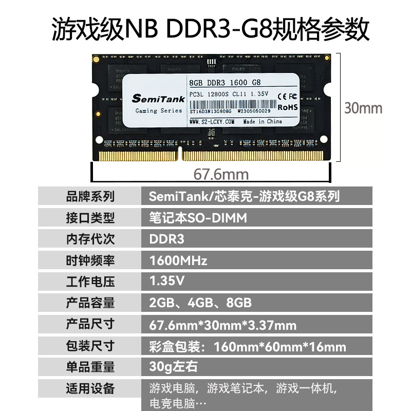 | nameOriginal | E-sports 1.35V laptop memory 2G DDR3 fully compatible with 1600 games 4G three generations d3 computer memory 8g |