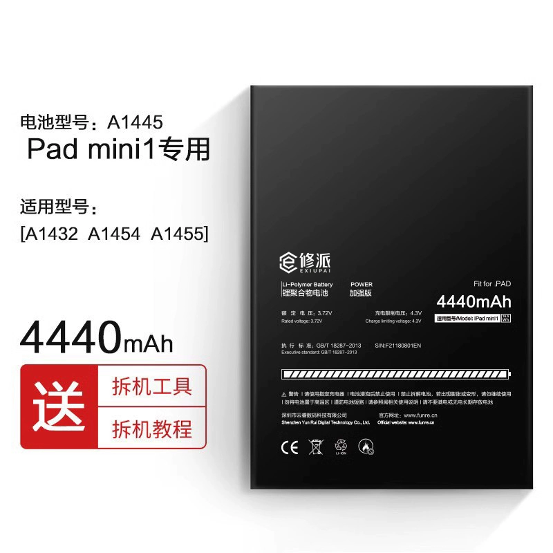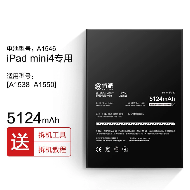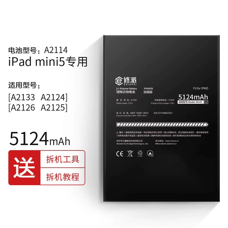 | nameOriginal | E Xiupai battery is suitable for Apple ipadmini1 2 3 4 5 6 tablet computer a1538 1489 2133 1550 1432 a1466 a1566 air2 large capacity electric board replacement |
