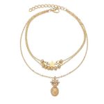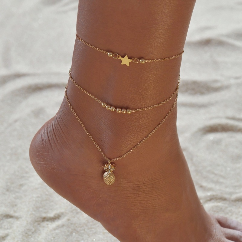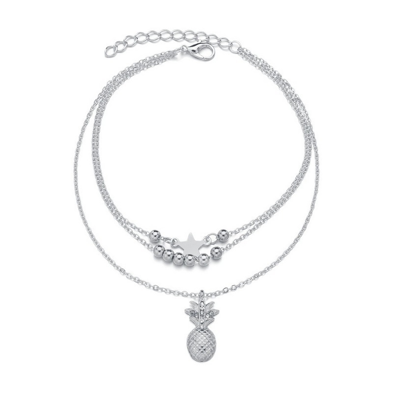 E039 European and American Cross-border Fashion Joker Personality Alloy Creative Pineapple Star Simple Double-layer Anklet Jewelry