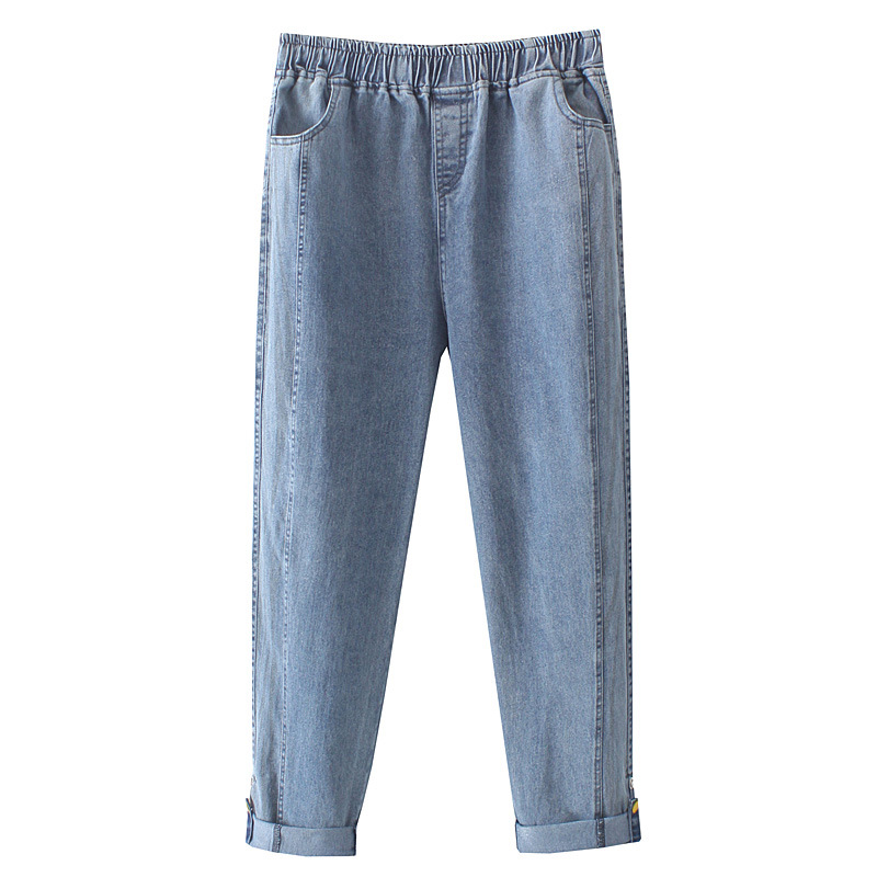 E21 Chubby Girls Large Size Women’s Clothing Autumn and Winter New Korean Style Loose Slimming High Waist Elastic Double Buckle Jeans Trendy K691