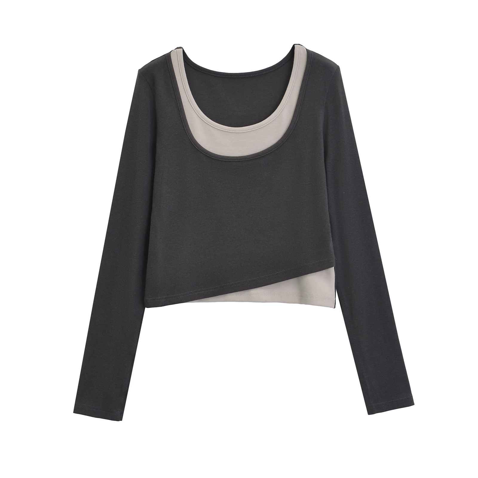 | nameOriginal | E3FEI-1687 fake two-piece T-shirt Korean style women's clothing wholesale 2024 early spring new slimming stitching contrast color long sleeve |