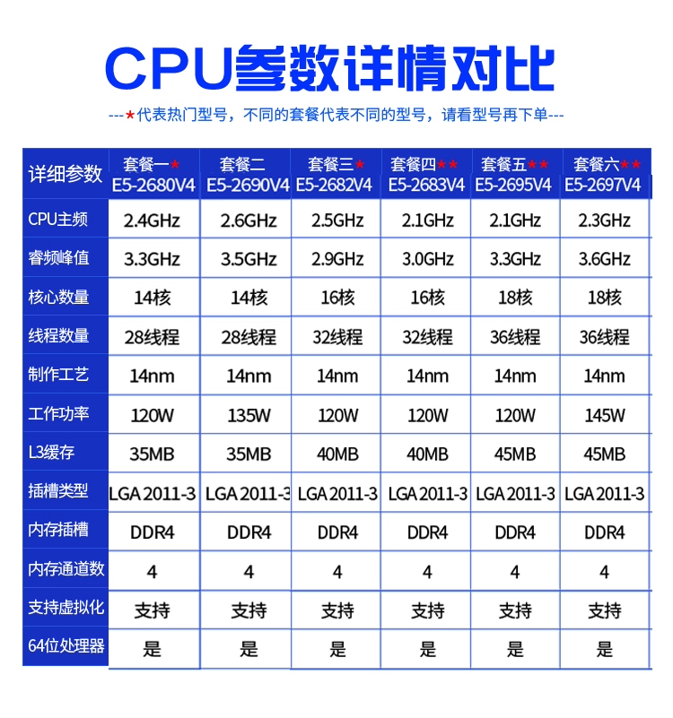 E5-2696v3 2698 2697v4 2696 2686 2680V4 2673v4 CPU