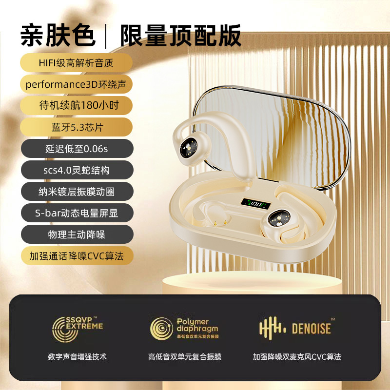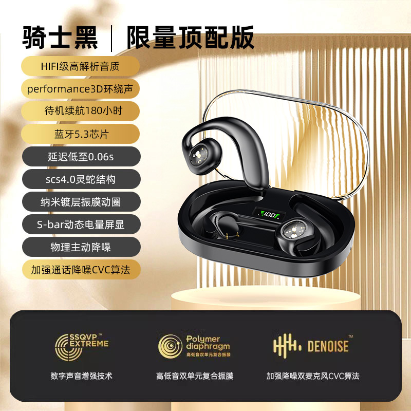 | nameOriginal | Ear-mounted Bluetooth headset bone conduction new 2024 wireless ear clip not in the ear running sports dedicated true noise reduction |