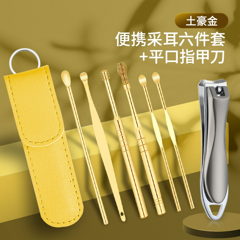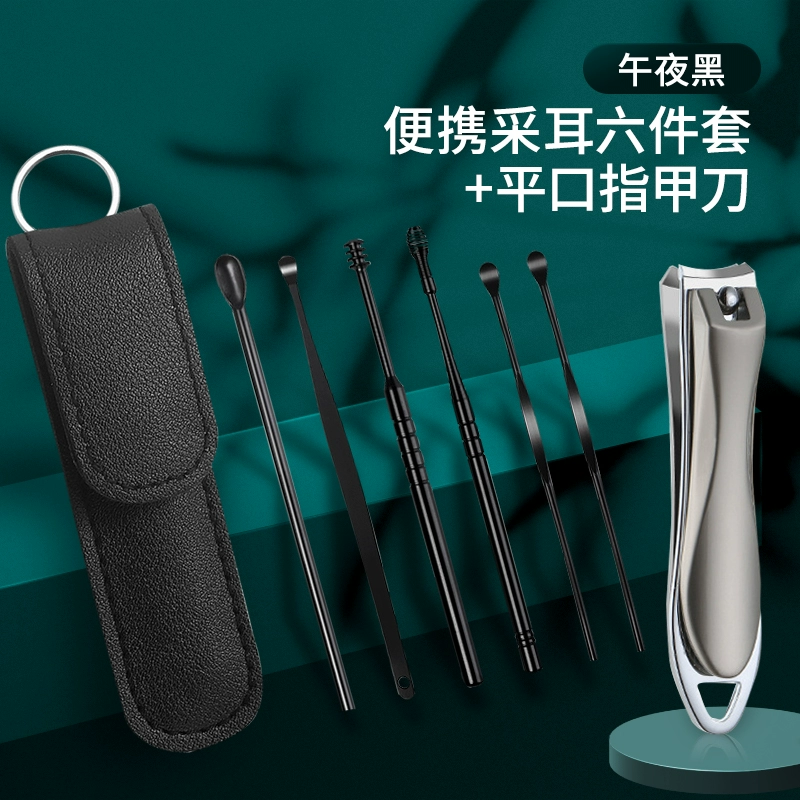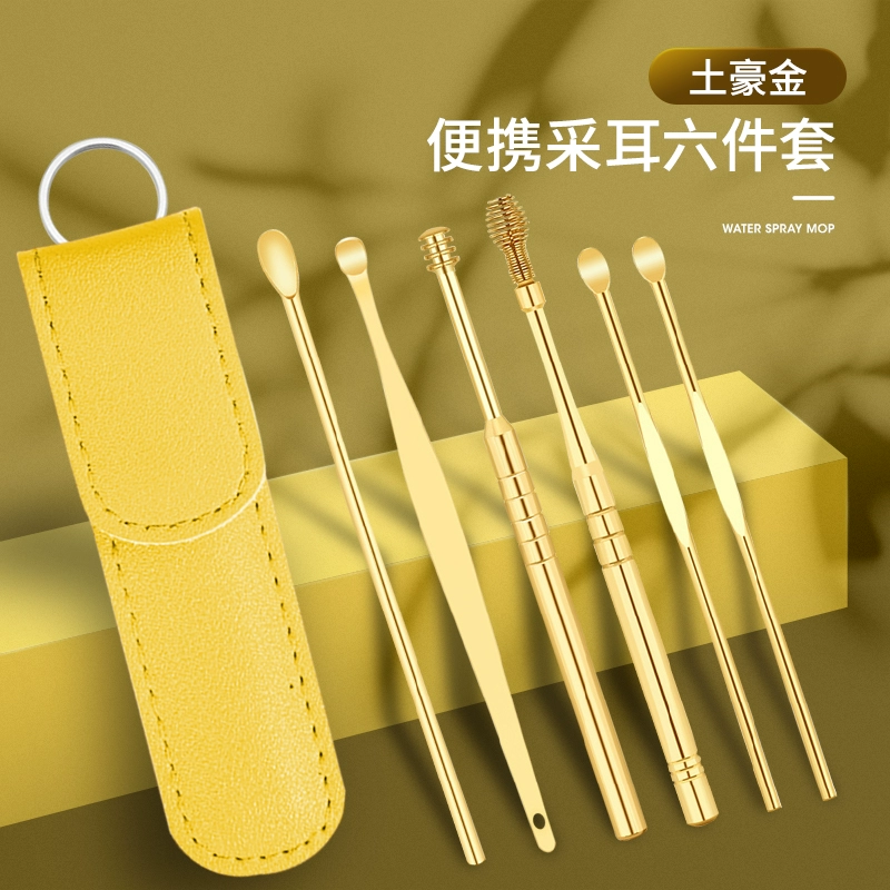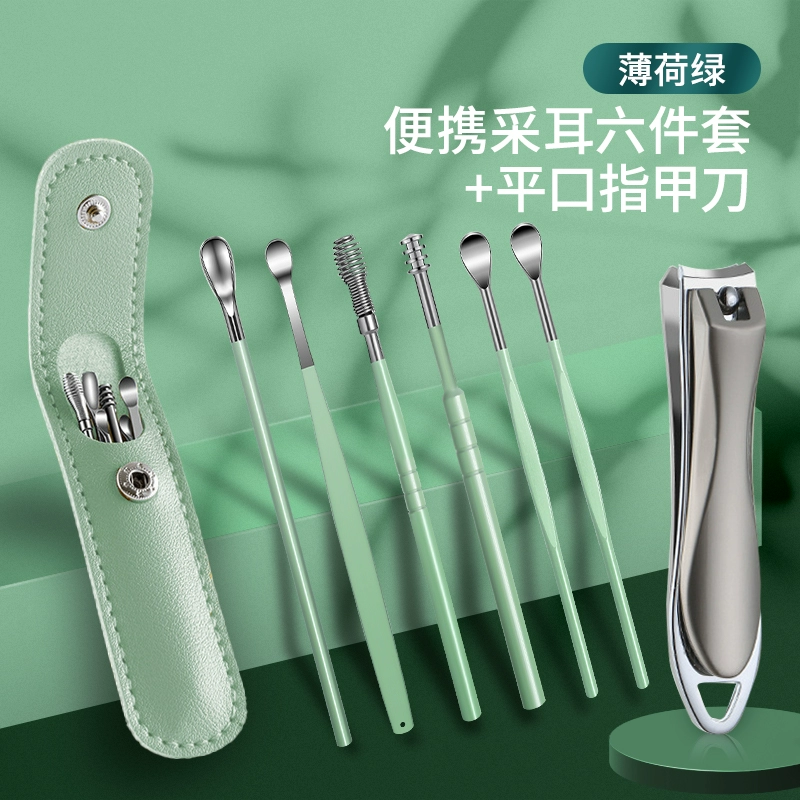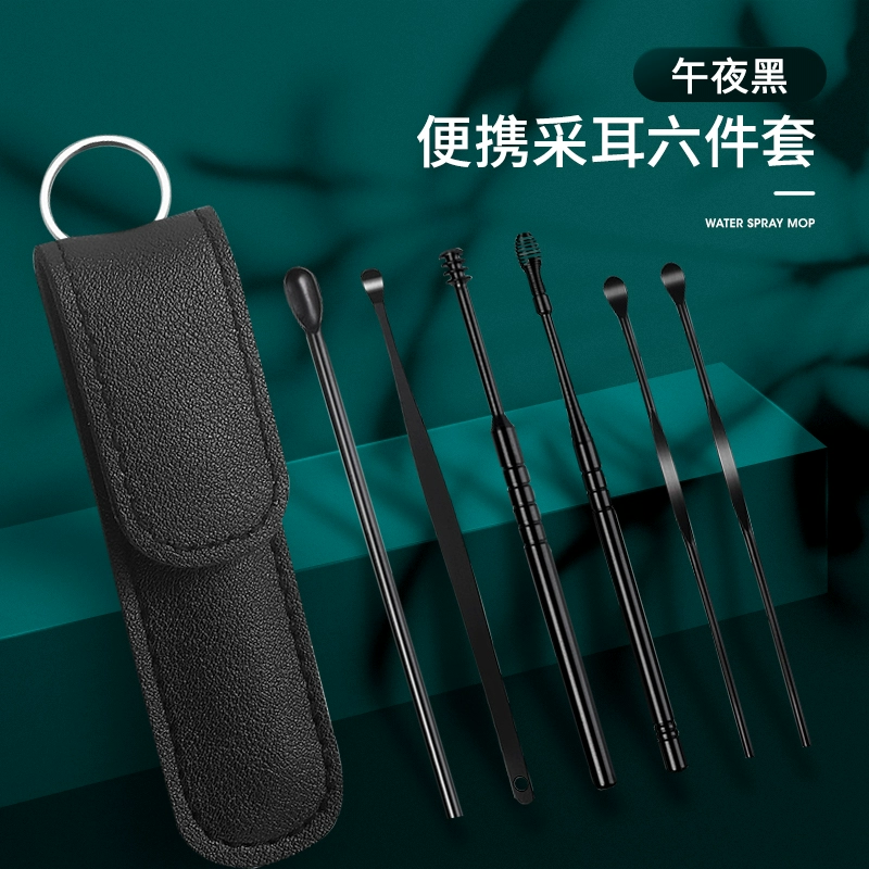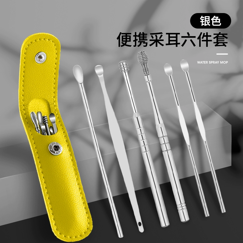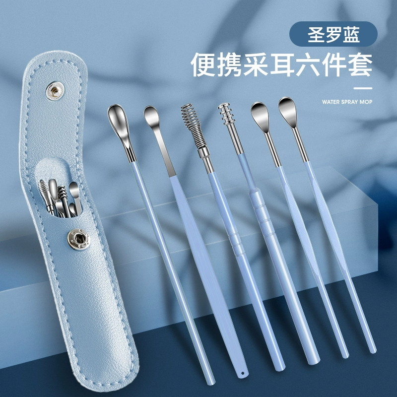 | nameOriginal | Ear-picking spoon set ear-picking tool stainless steel ear-picking artifact spiral portable leather bag buckle earwax pick-up household |