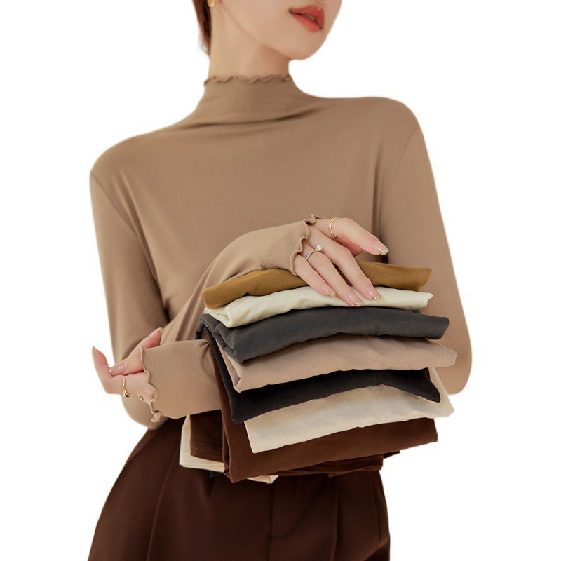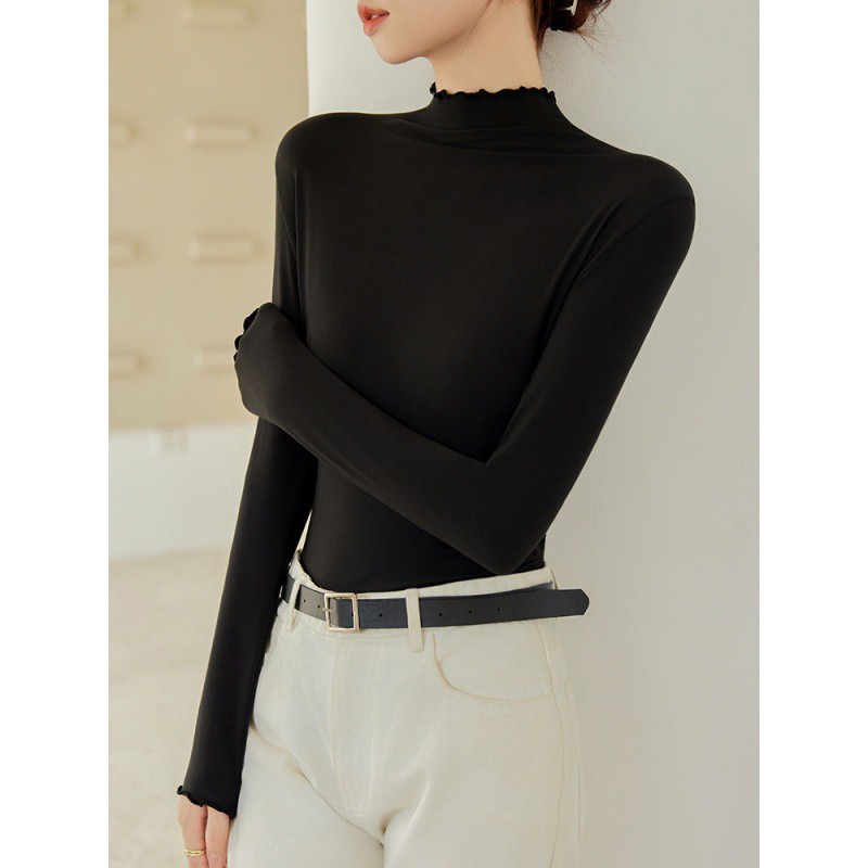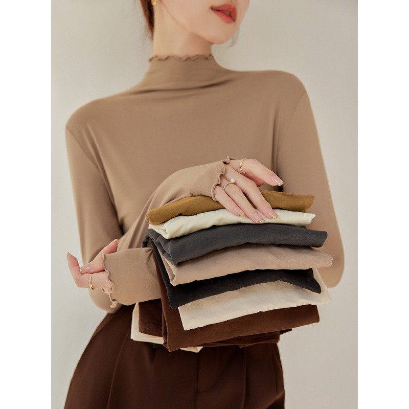 Ear-rimmed long-sleeved bottoming shirt women’s semi-high collar inner T-shirt Korean-style jacket autumn and winter warm solid color T-shirt strictly selected