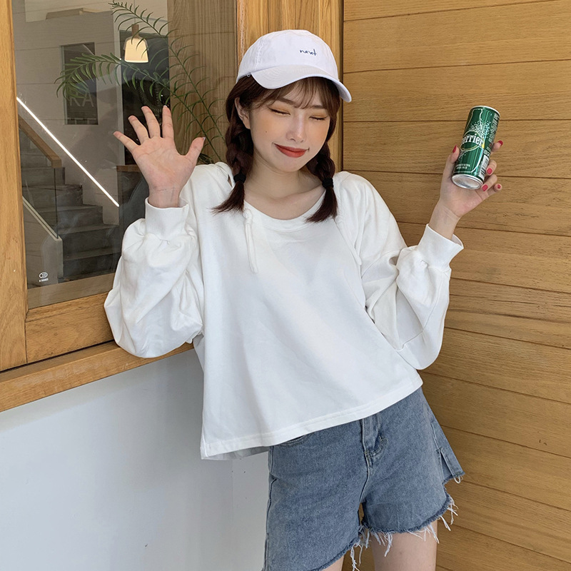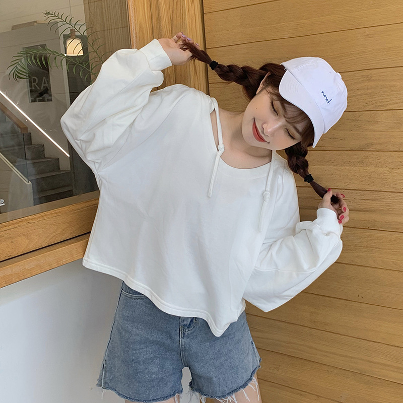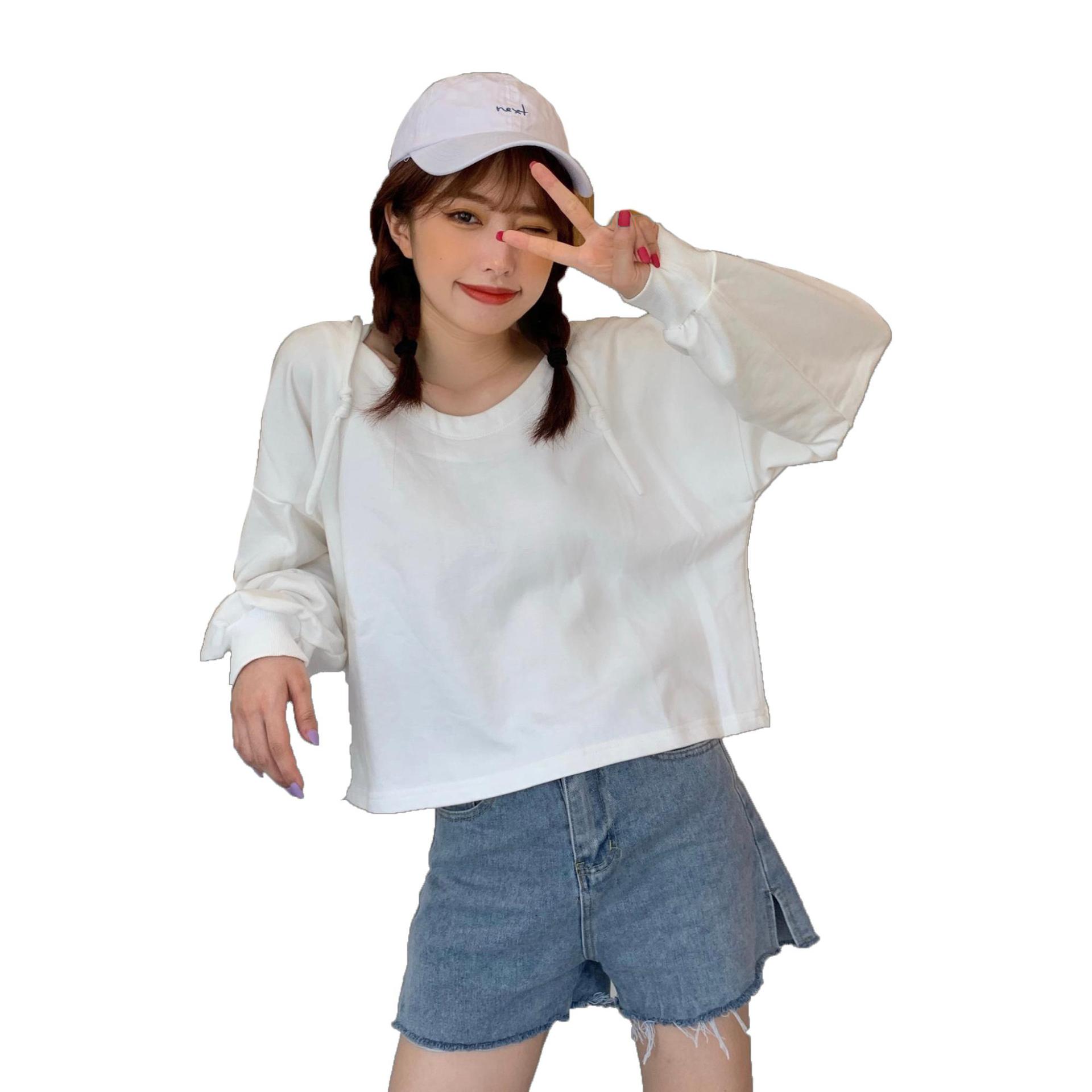 Early Autumn 2021 New Short Solid Color Sweatshirt Women’s Hooded Long Sleeve Korean Style Loose Ins Student Women’s Top Trendy