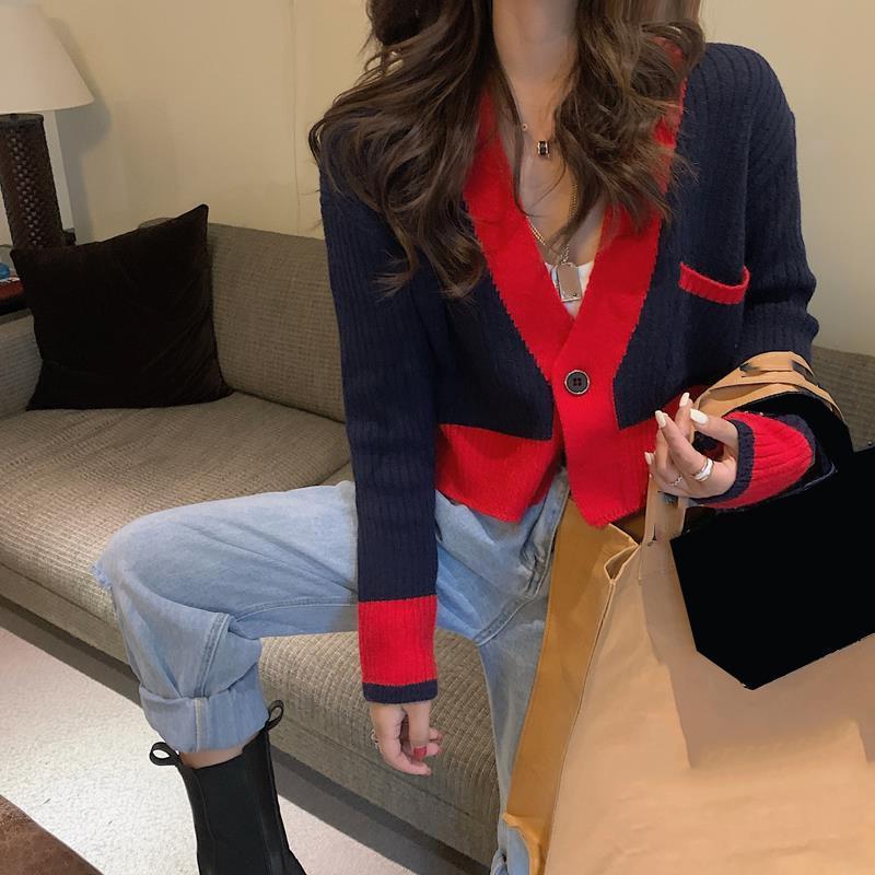 | nameOriginal | Early Autumn 2023 New Korean-style Slim Western-style Fashion Contrast Color V-neck Short Long-sleeved Knitted Cardigan Women's Trendy |