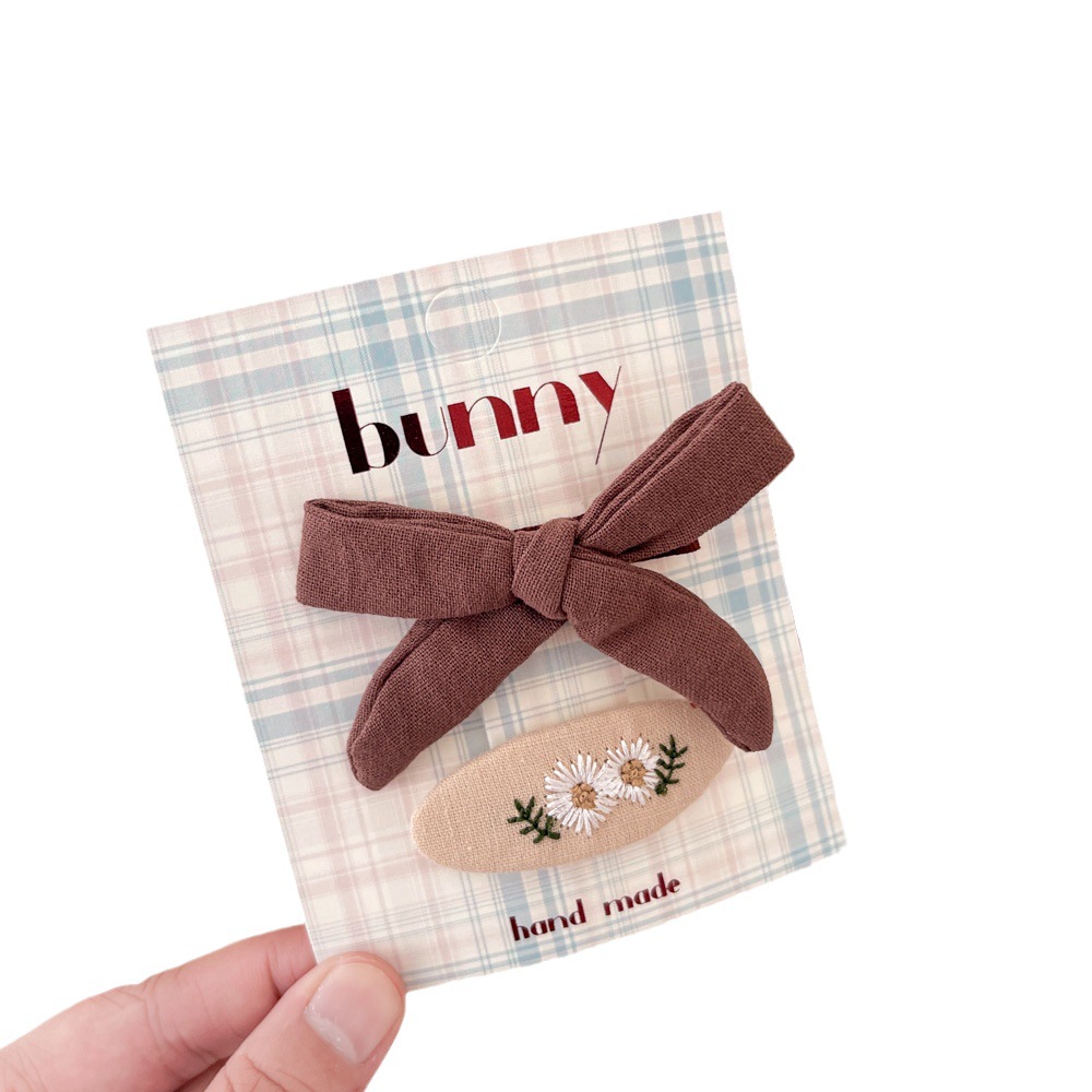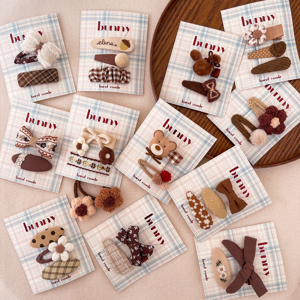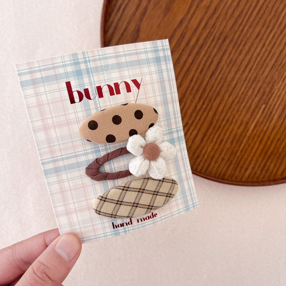 | nameOriginal | Early autumn Brown Series children's hair accessories new fabric flower hairpin parent-child embroidered Plaid girl Oval BB clip |
