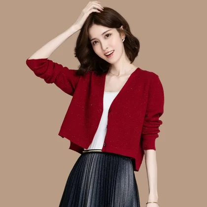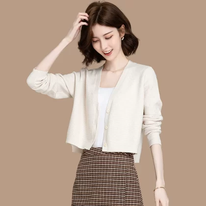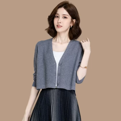 | nameOriginal | Early Autumn Cardigan Jacket High Waist Women's Sweater 2024 New Autumn Knitted Top Ultra Short Style for Spring and Autumn Outerwear |