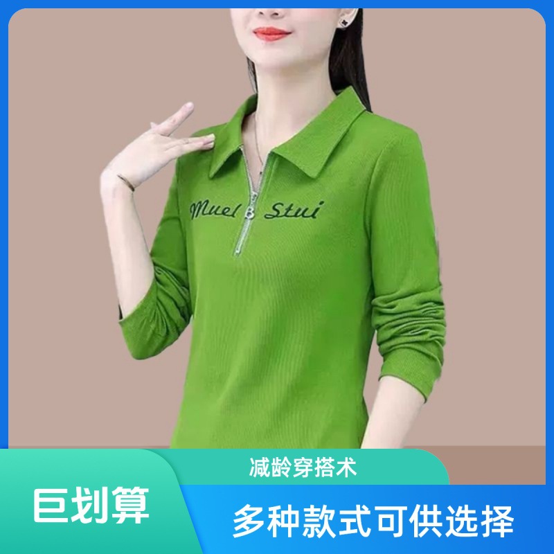 | nameOriginal | Early Autumn Fashion Zipper POLO Shirt Spring and Autumn New Middle-aged Slim-fit Slimming Solid Color Long Sleeve Sweater Women |