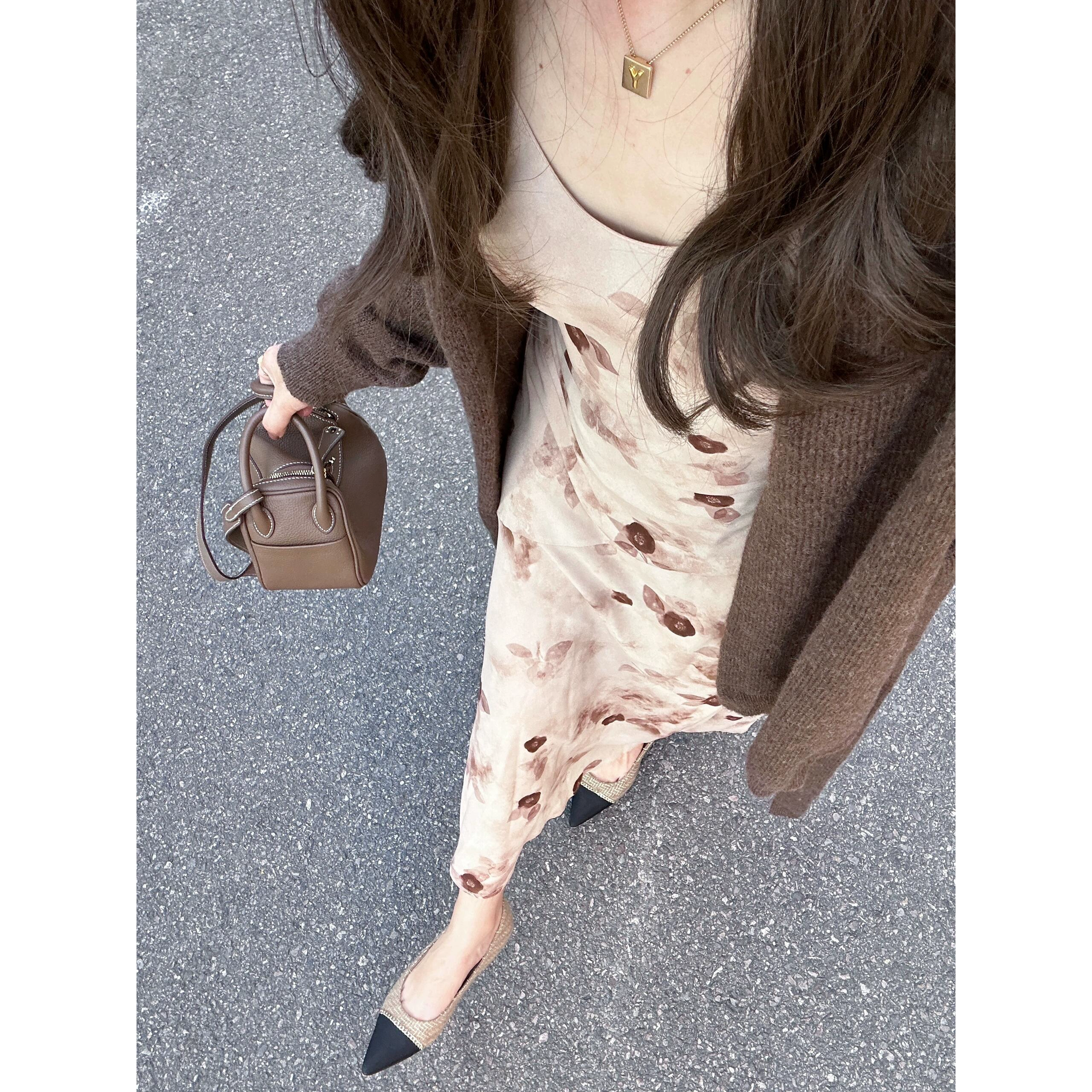Early autumn high -level sense mid -length wearing knitted cardigan