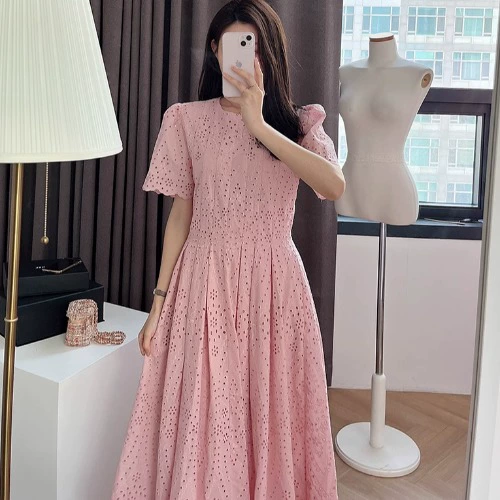 Early autumn Korean chic style retro dress with crochet pattern