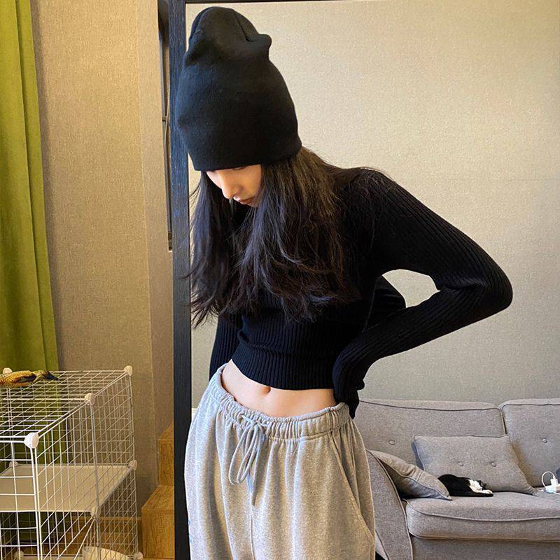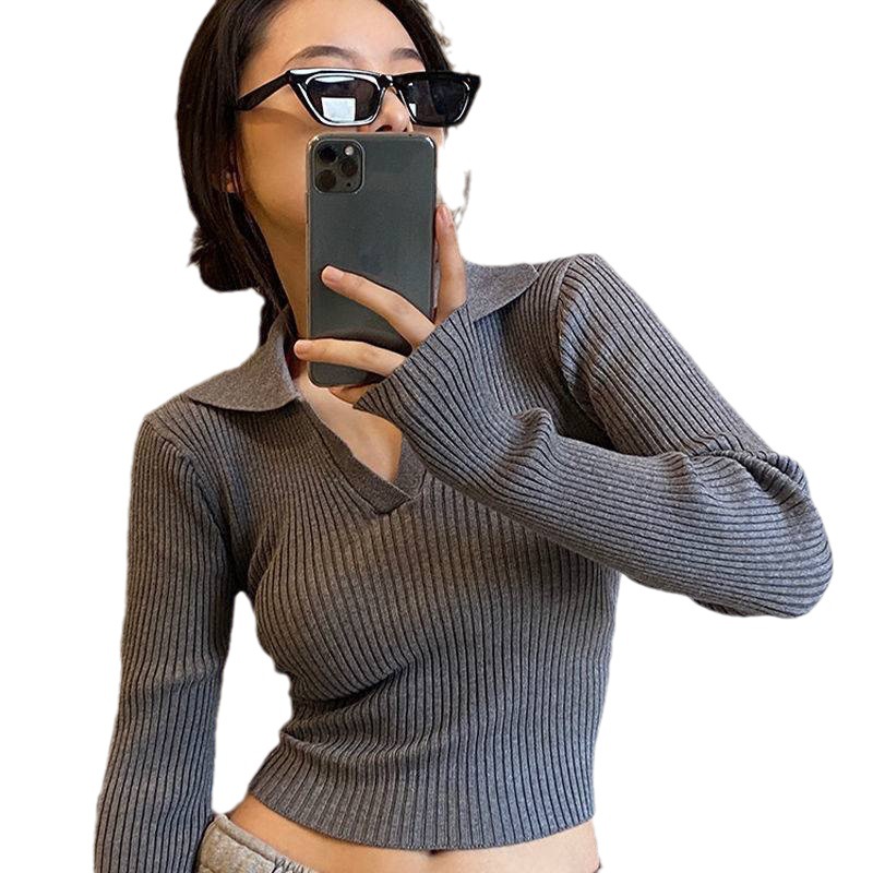 | nameOriginal | Early Autumn new long sleeve V-neck knitted bottoming shirt inner slim fit short navel high waist polo collar top for women |