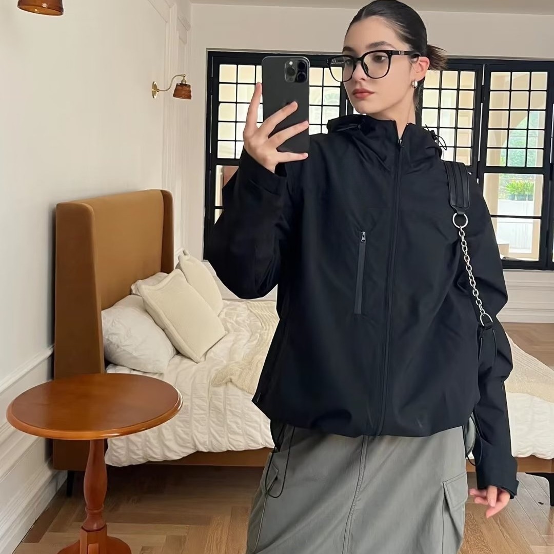 Early Autumn New retro style royal sister style workwear outdoor American loose coat women’s thin Milky yellow black jacket