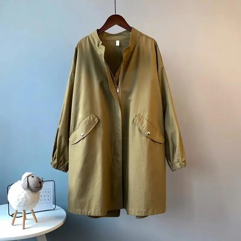 | nameOriginal | Early autumn stand collar trench coat women's mid-length plus size 2024 Korean version of loose drawstring waist bf port style work coat tide |