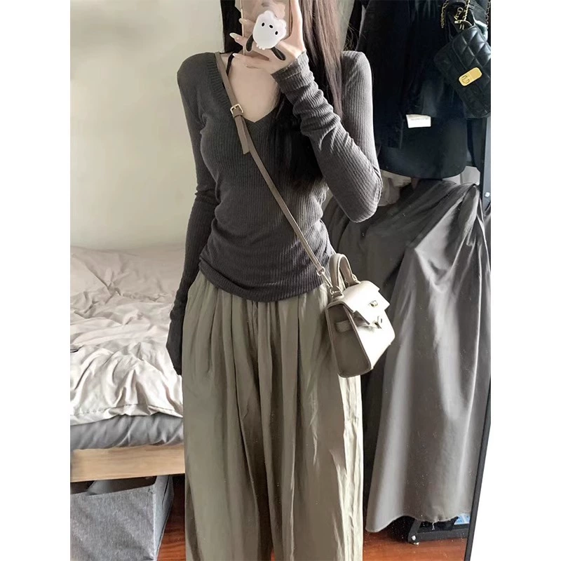 Early autumn tops with wide legs and a complete set of long-sleeved T-shirts