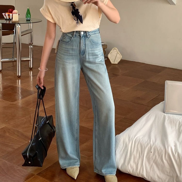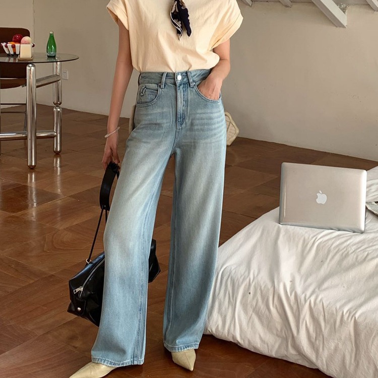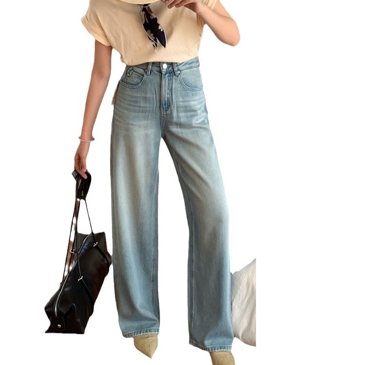 Early Autumn Wide Leg Pants Jeans Women’s 2024 New South Korea High Waist Loose Slimming Narrow Straight Long Pants