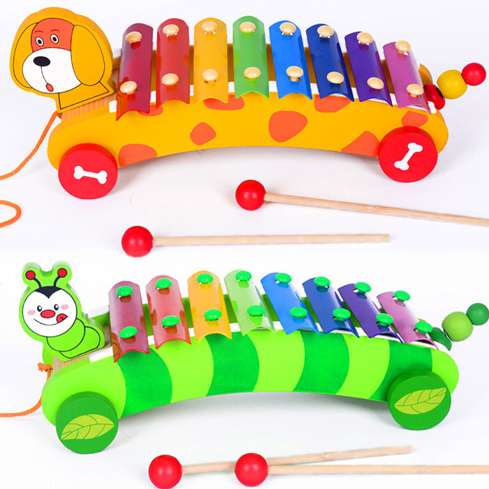 Early Education Children's Dragging Animal Knocking Puppy Caterpillar Beneficiaries Music Toys 1-2-3 Years Old Dragging Xylophone