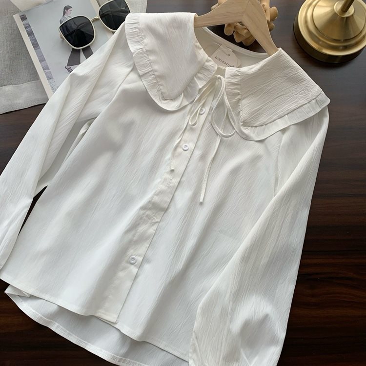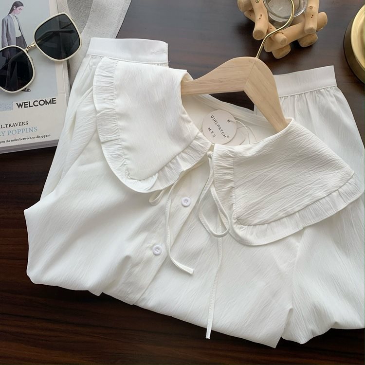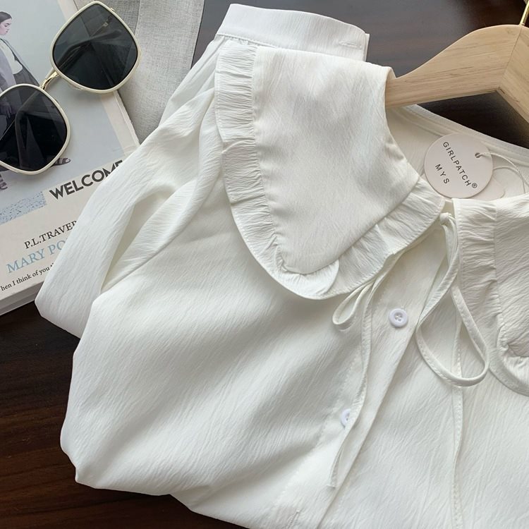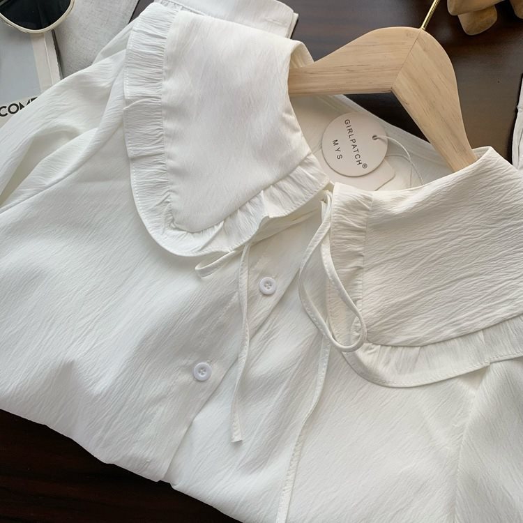 | nameOriginal | Early Spring Age-reducing Pleated Non-ironing White Shirt with Cardigan Vest Design Sense Niche Doll Collar Strap Shirt for Women |