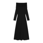 | nameOriginal | Early spring black slim-fitting drapey long-sleeved dress |