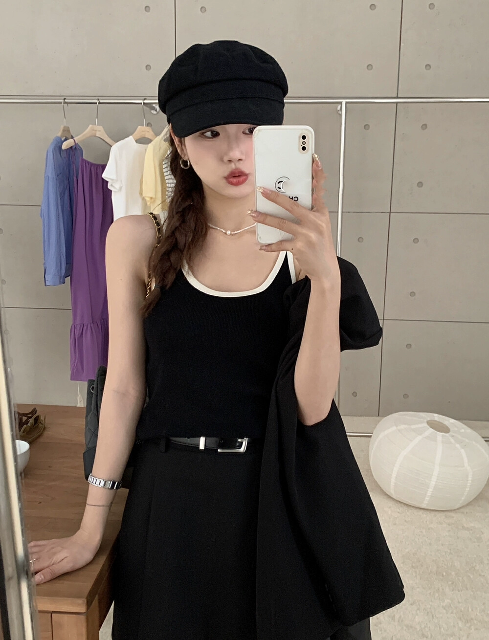 | nameOriginal | Early Spring Contrast Color Shirt Slim-fitting U-neck Knitted Vest |
