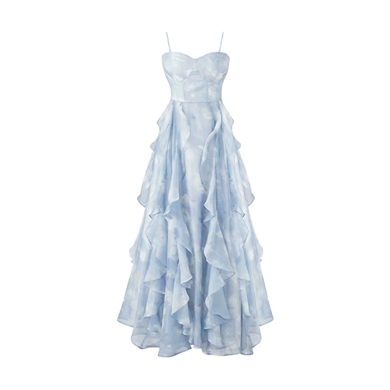 | nameOriginal | Early spring French gentle waist blue suspender dress |