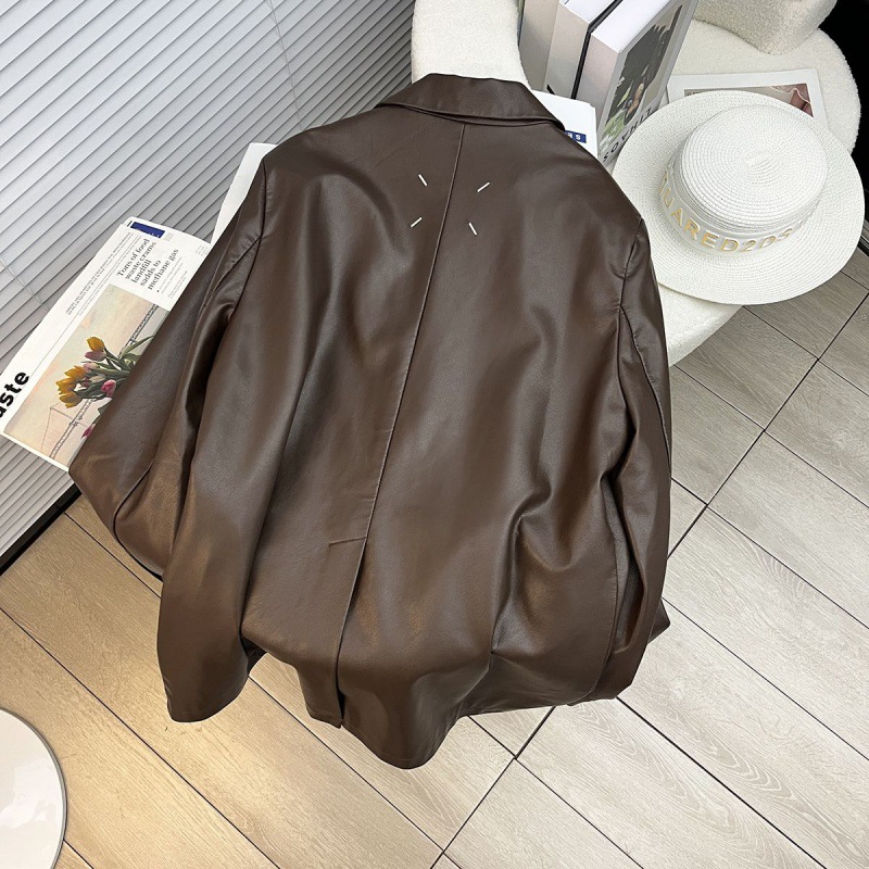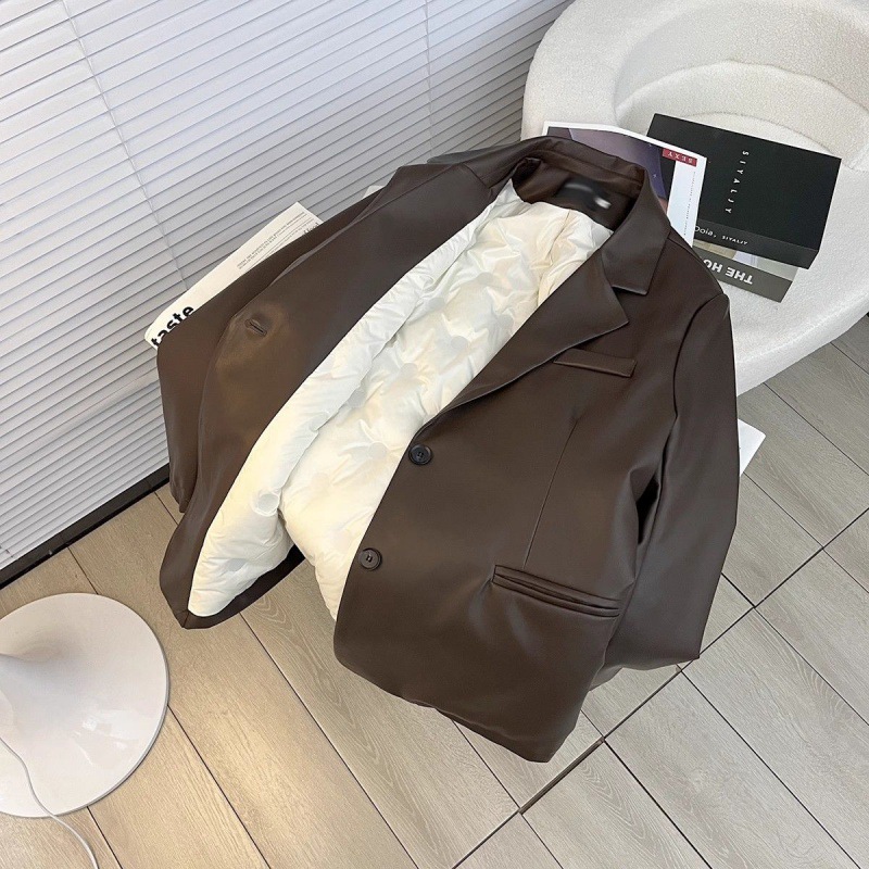 Early Spring New Explosions brown Maillard Soft Leather Suit Collar Coat Women’s Down Jacket fleece-lined Jacket