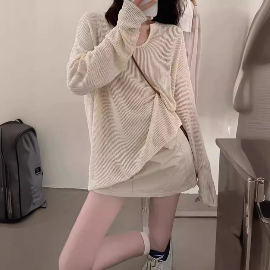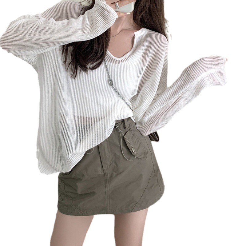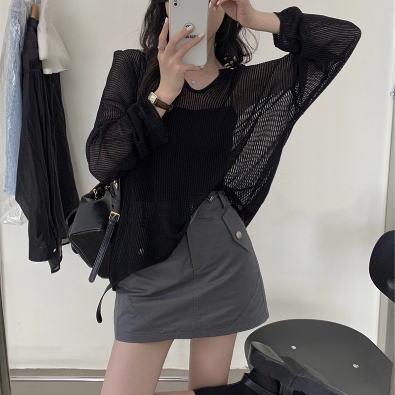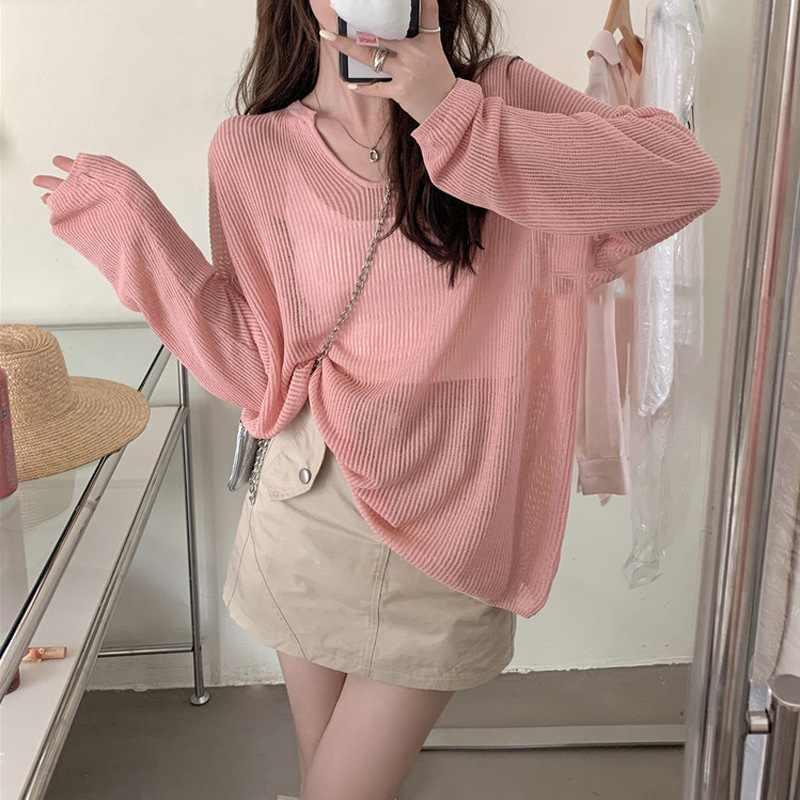 Early spring new hollow sunscreen sweater Korean version of loose thin blouse top slim lazy wind cross-border explosions