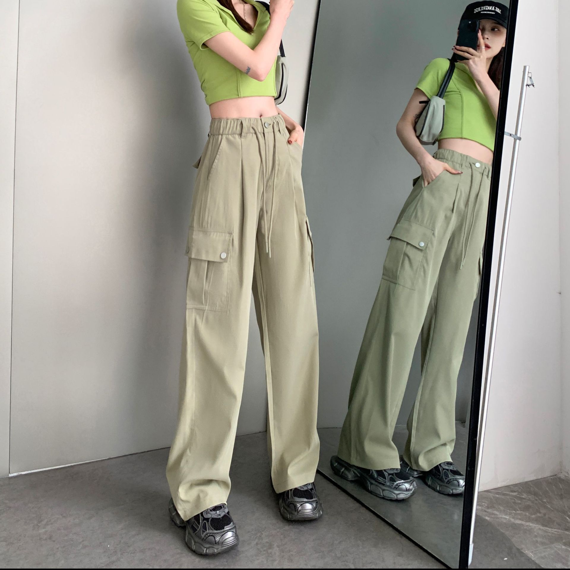 | nameOriginal | Early spring new overalls women's 2024 narrow multi-bag drawstring elastic high waist fashionable all-match casual sports pants |