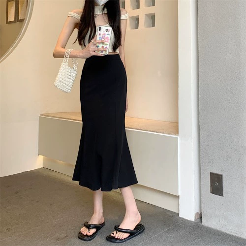 | nameOriginal | Early spring ruffled mid-length hip-hugging fishtail skirt |