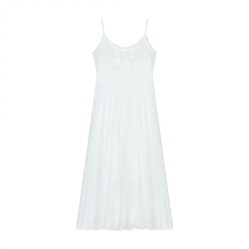 Early spring white suspender slim A-line skirt with bow